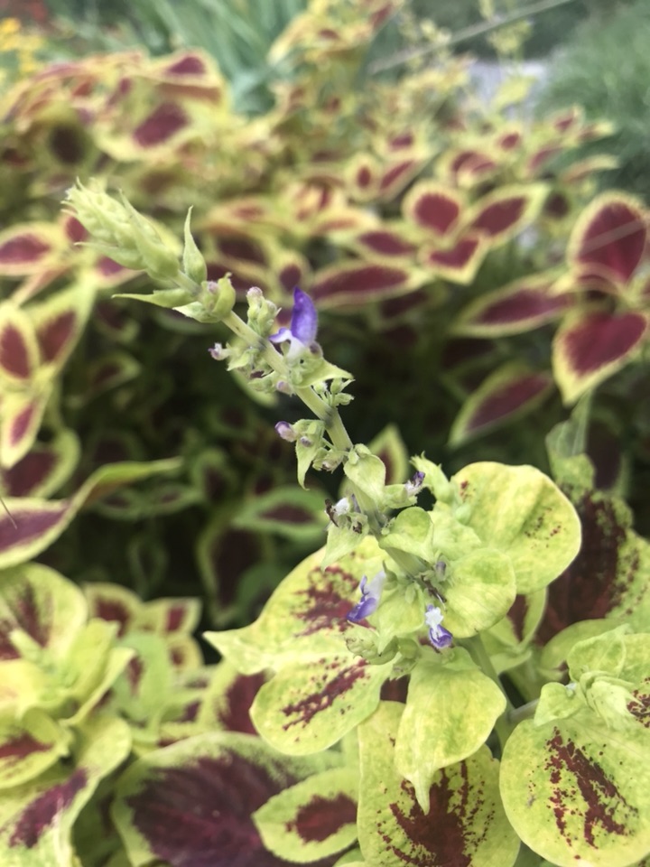 这个颜色的五彩苏颜色鲜艳的要抢眼很多,不过花开的却是零零散散、寥寥无几。也许它的花期要晚点吧,那就再等等吧,等它抽出更多的花穗来,会是另外一种风情吧