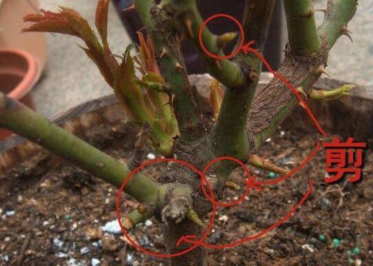 等春季最后一个霜冻要结束的时候,就进行一次重剪,如上图所示,一些枯枝可以一些不良的侧枝都要剪掉,剩下的基本就是3个左右的主干,你不用担心它长不了新的分枝。