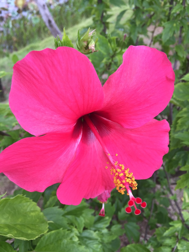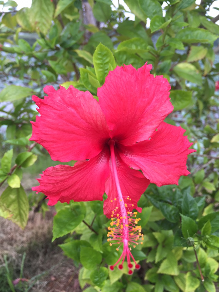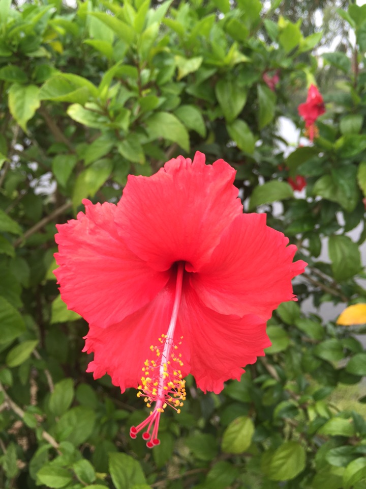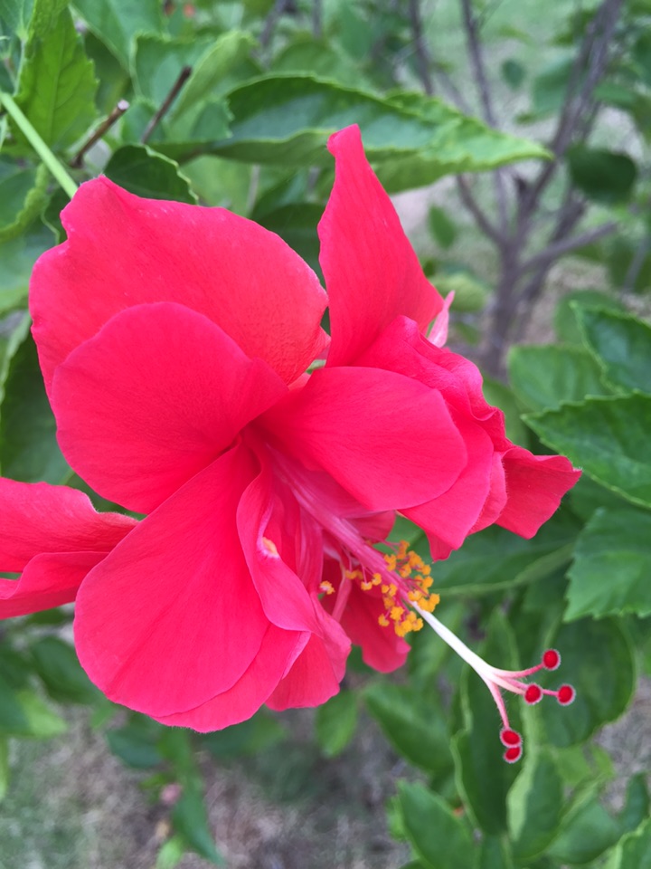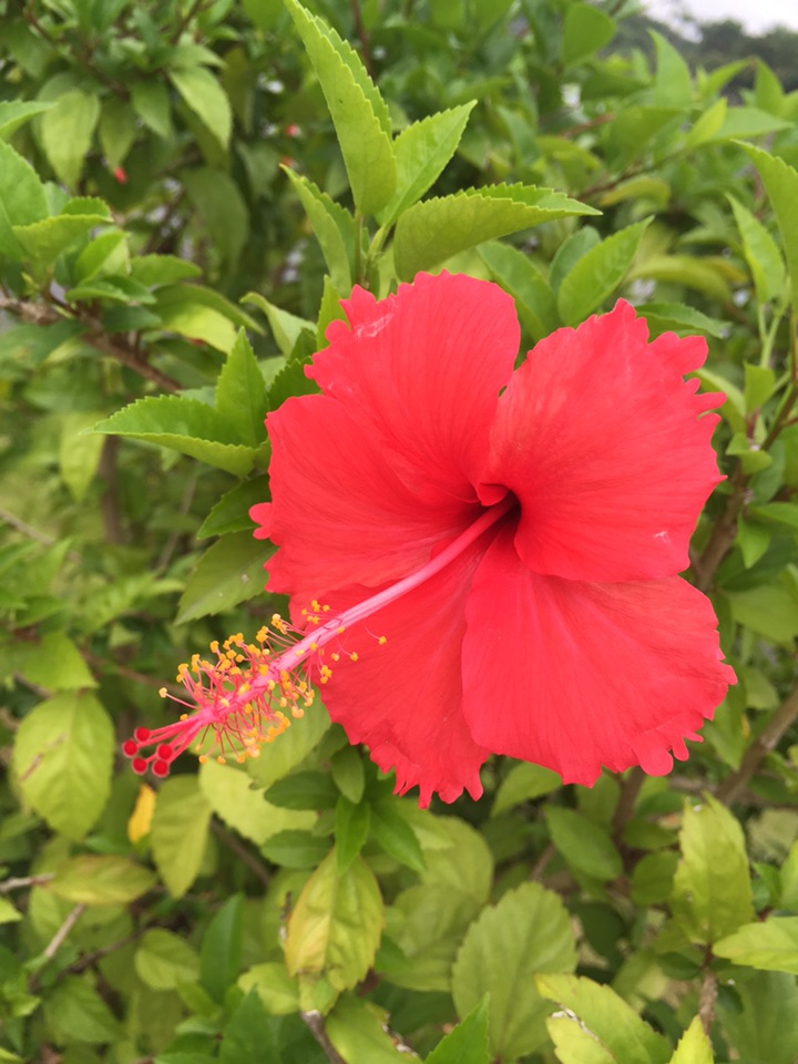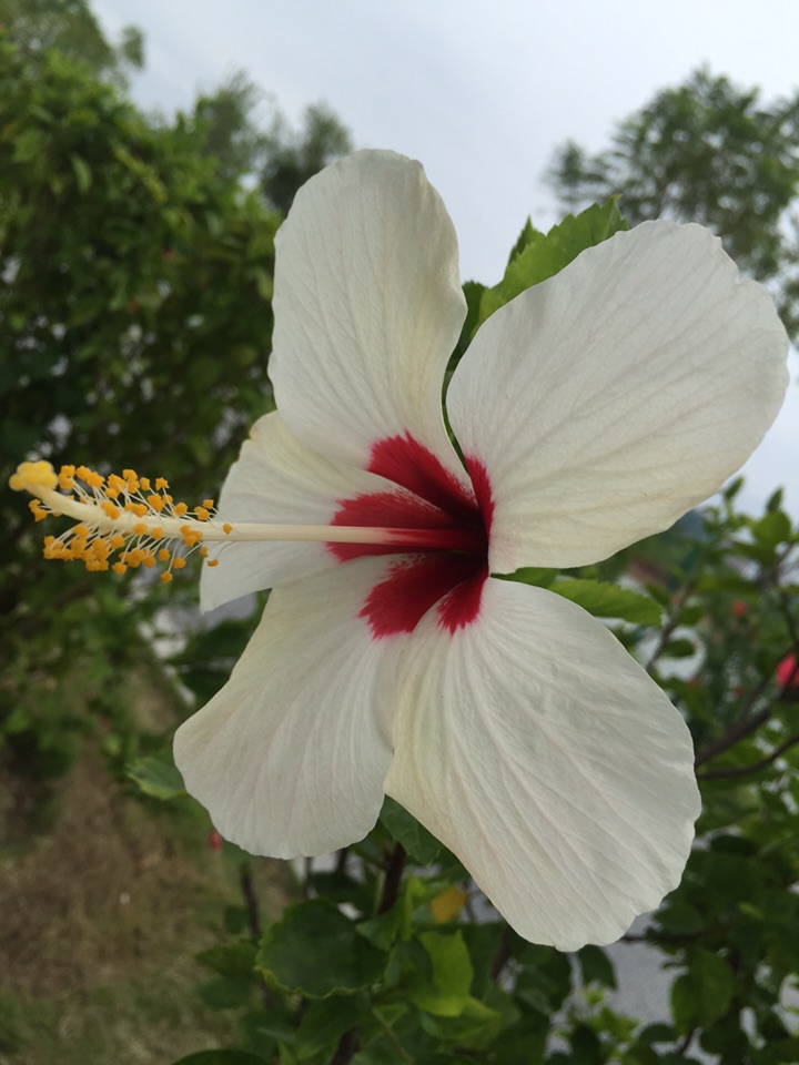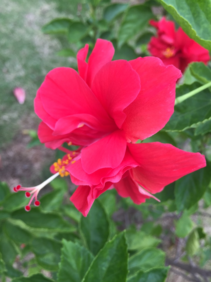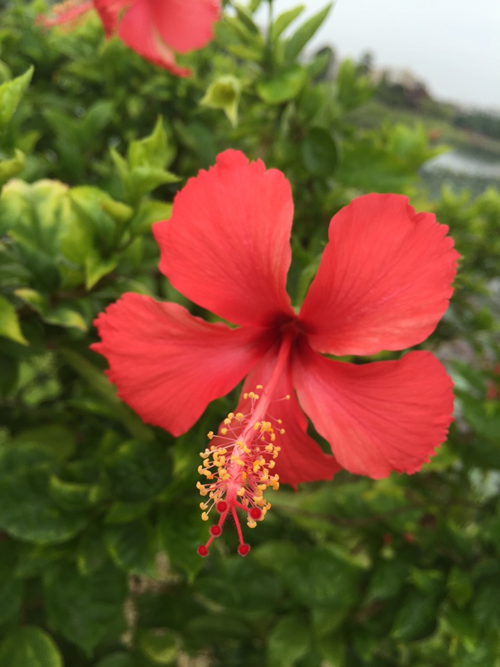 散步公园,朱槿正开得灿烂。忽然发现,朱槿还是很美的,红的热烈,间或点缀着素雅的白花,也是一道明媚的风景。