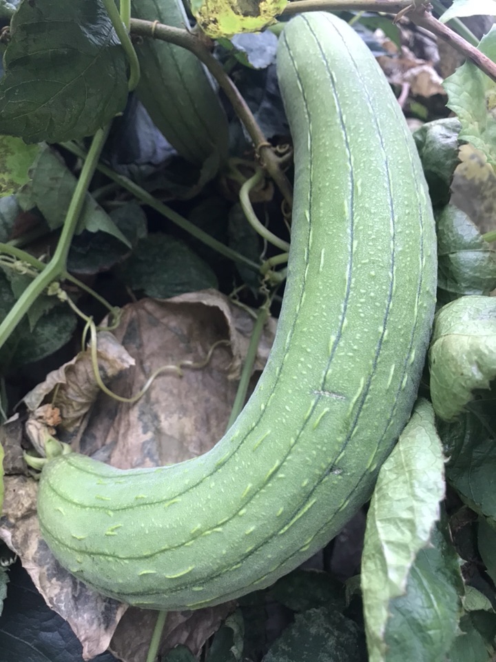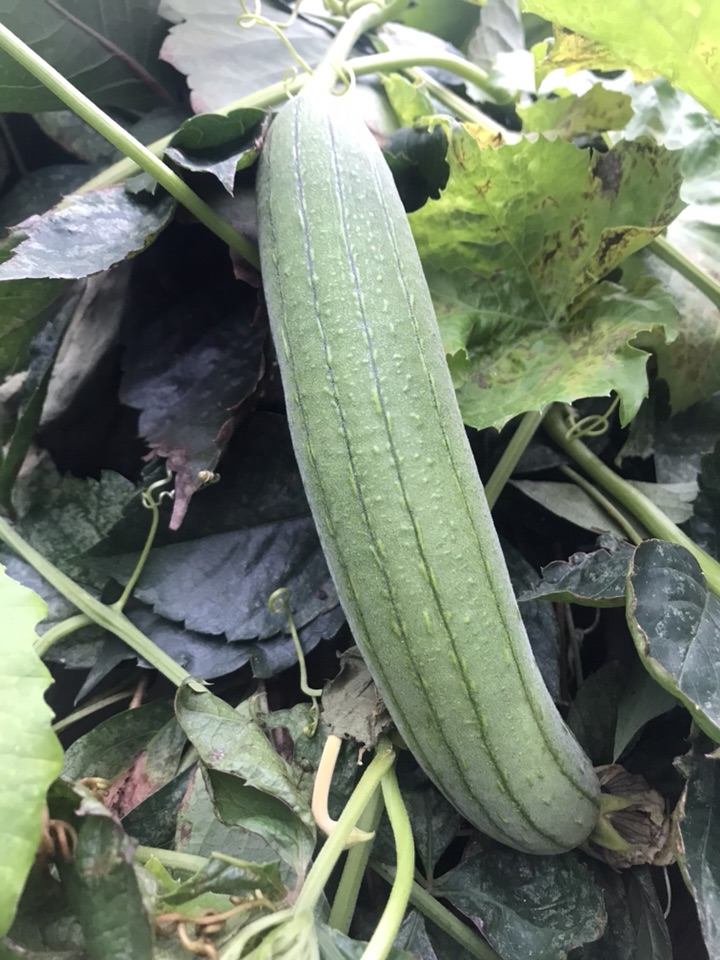 图一是8月26日记录的那只还在花上小丝瓜,如今已长大了到了采摘的季节。其余的都是后续慢慢探出身子来的,明明出生的更晚有些长得却比第一个要壮实很多