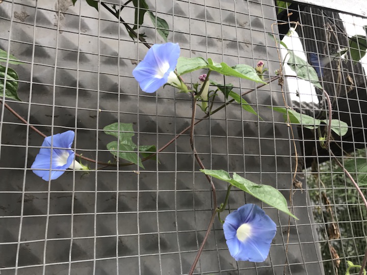 这个颜色很素净,跟以往任何时候遇到的牵牛花都不大一样。该怎么形容呢? 还是不形容了,看图说话吧
