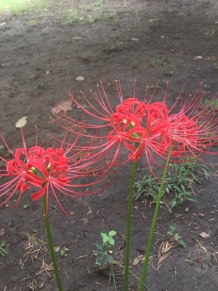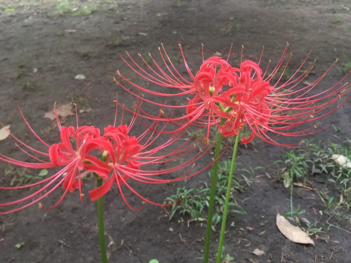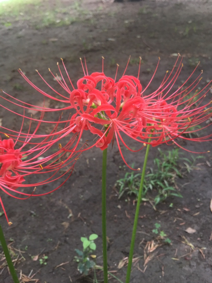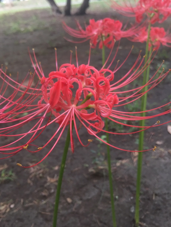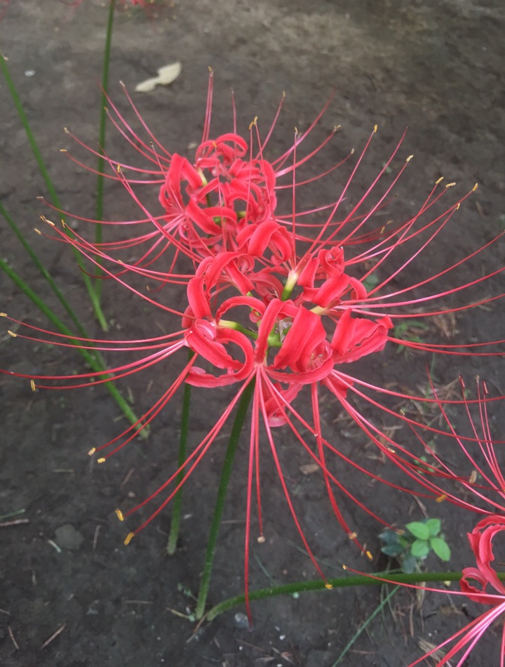 中文学名:红花石蒜,花期夏末秋初,约从7月至9月,性喜阴湿环境。花茎长30-60厘米,通常4-6朵排成伞形,着生在花茎顶端,花瓣倒披针形,花被红色,向后开展卷曲,边缘呈皱波状,雄蕊和花柱突出。