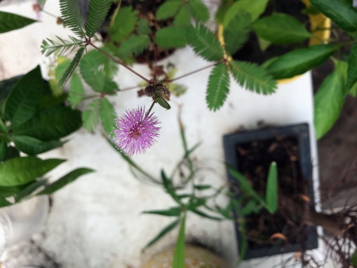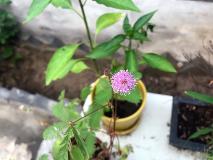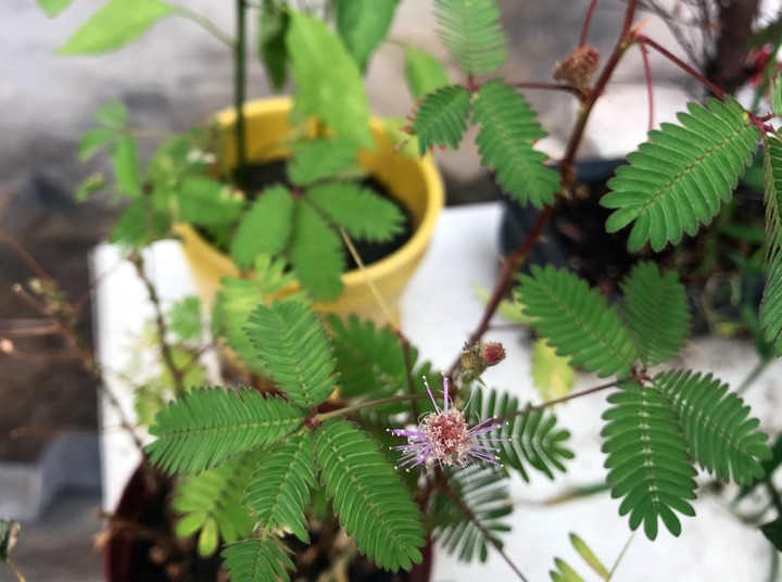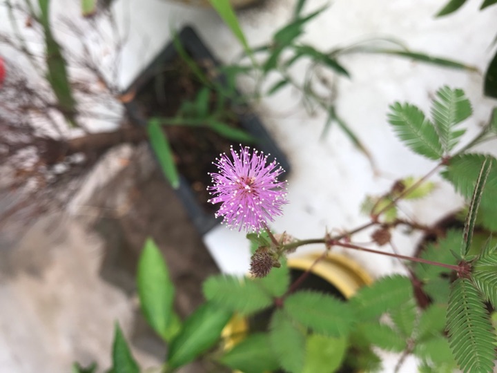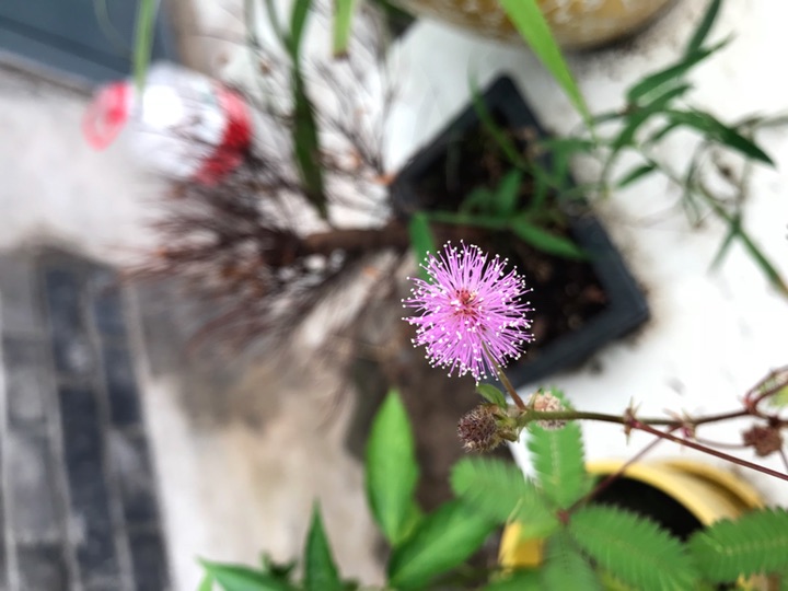 以前只是听说含羞草能开花,可一直没机会见它长什么样。今日一见原来含羞草的花这么好看呐!