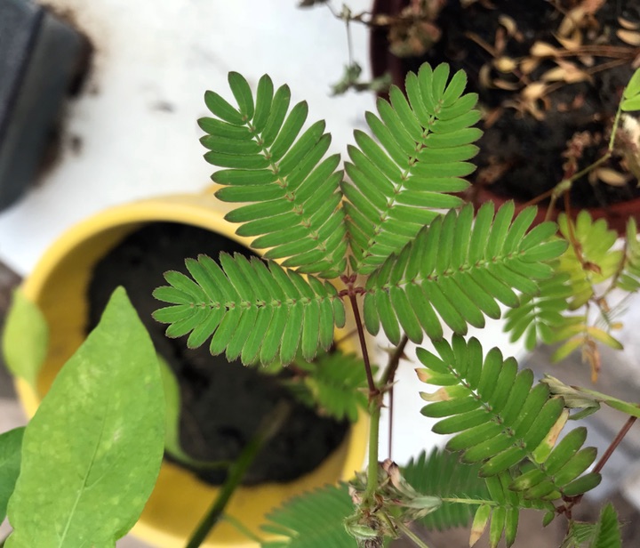 含羞草(学名:Mimosa pudica Linn. ):为豆科多年生草本或亚灌木,由于叶子会对热和光产生反应,受到外力触碰会立即闭合,所以得名含羞草。含羞草与一般植物不同,它在受到人们触动时,叶柄下垂,小叶片合闭,因此人们理解它为“害羞”,故称之为感应草、喝呼草、含羞草、知羞草和怕丑草(粤语)。原产于南美热带地区,喜温暖湿润。