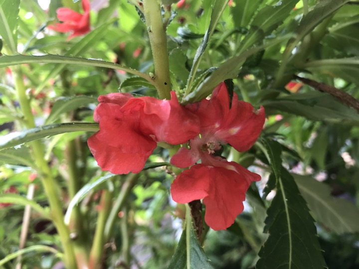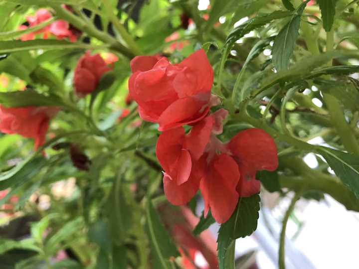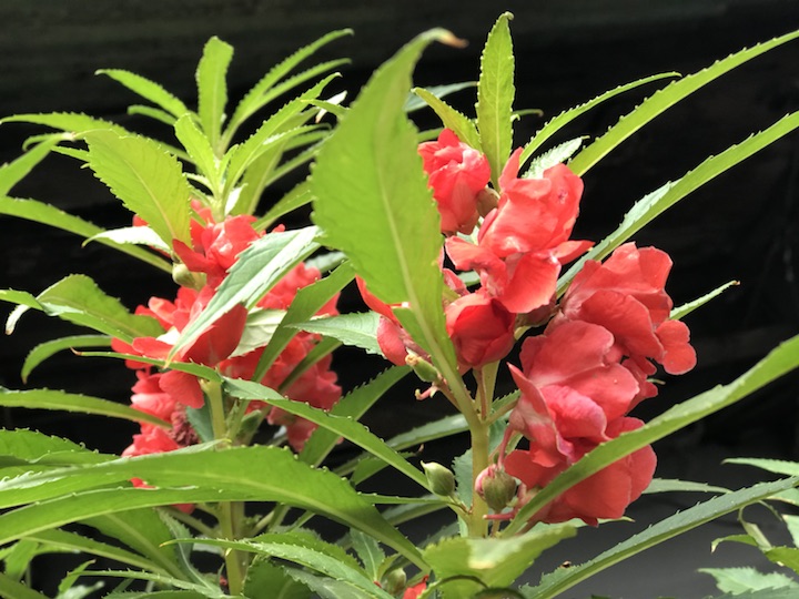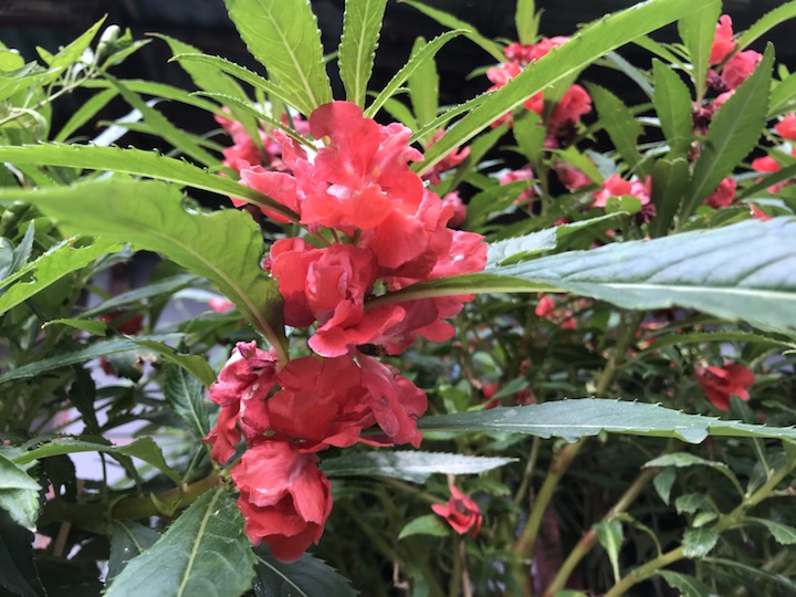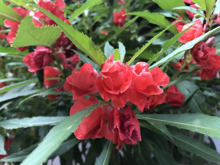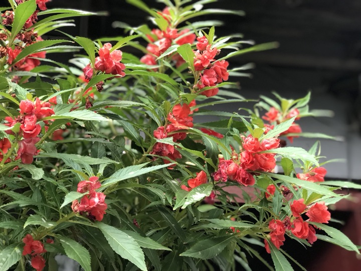 这几株凤仙花我是天天路过的,不知道在哪天它便悄然绽放了,也一直想着要拍拍的,却一直也没提上日程。拖到现在,繁花似锦,红艳异常也算是她的颜值巅峰之期了
