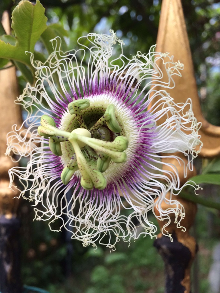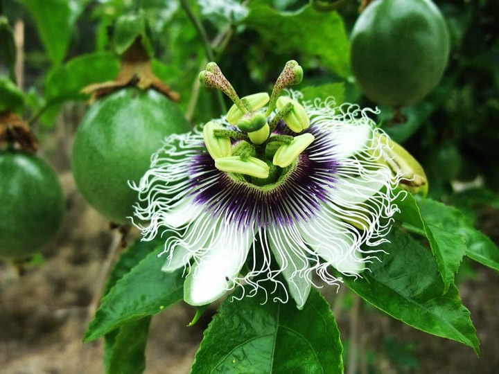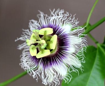 百香果是西番莲科西番莲属草质藤本植物。叶纸质,黄绿色,顶端渐尖,基部楔形,掌状三深裂(注意:西番莲是五裂,是区分两者要点)聚伞花序退化仅存一枚,其花形奇特,以至我无法描述!