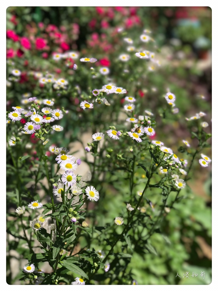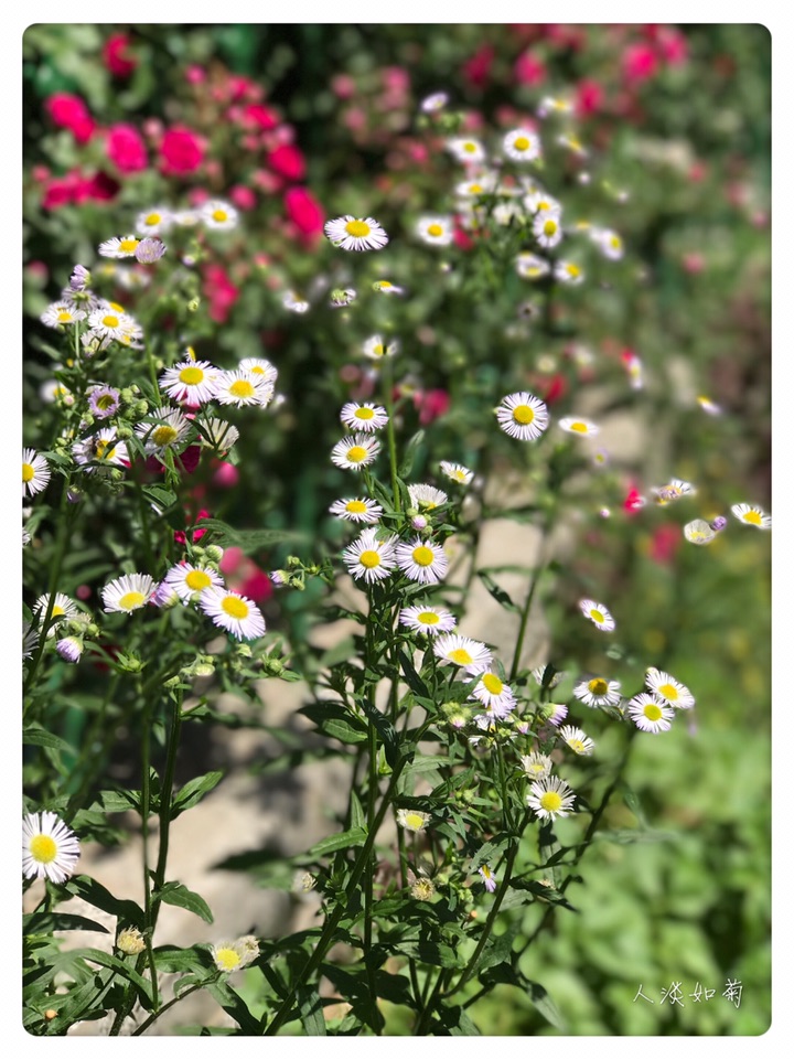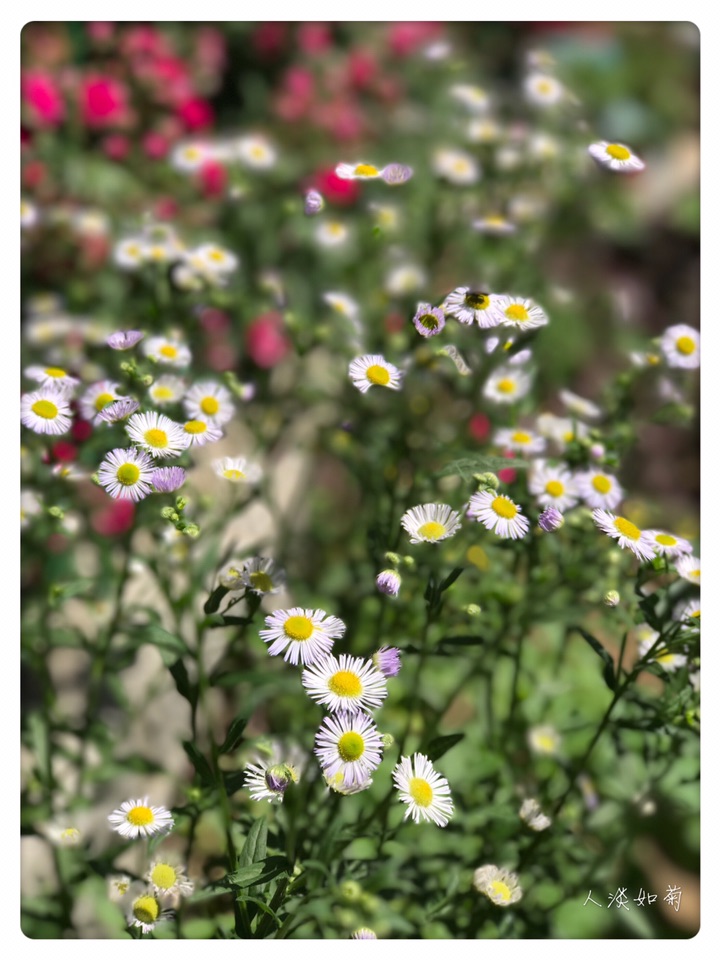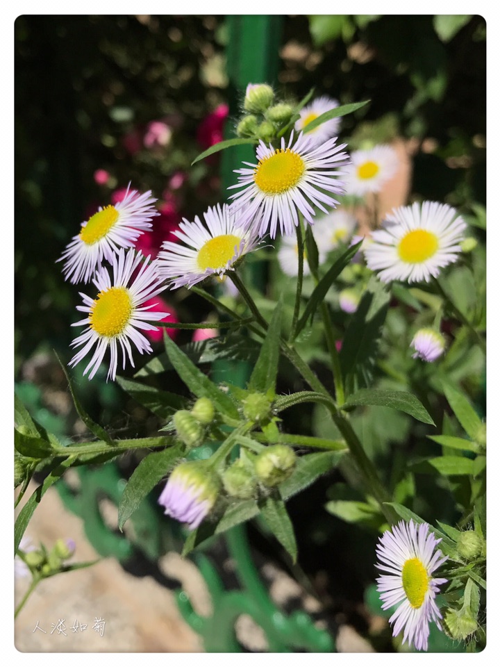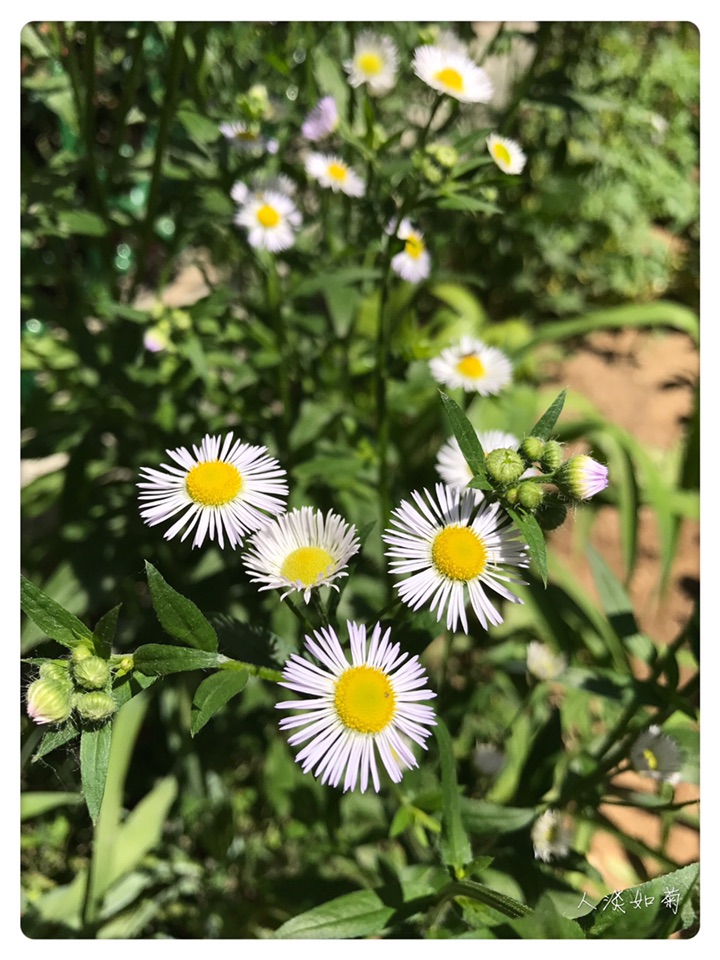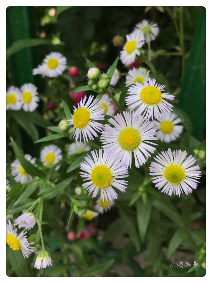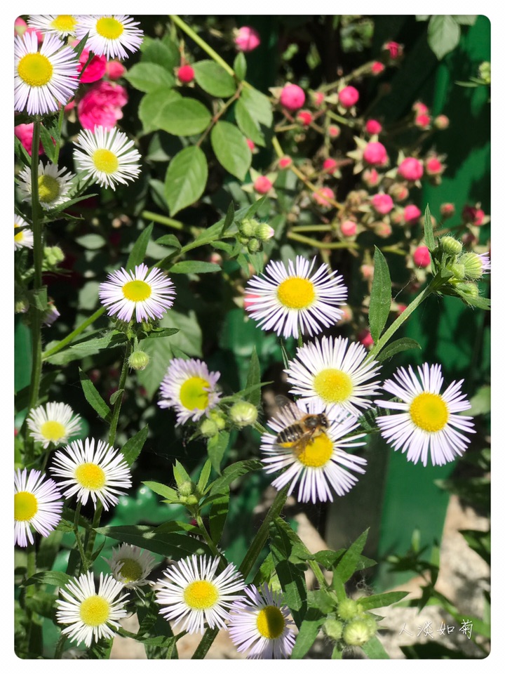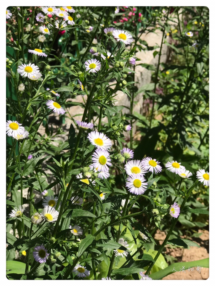 今春,小院里长出许多不知名的植物,那一簇簇喜人的叶子让我留下了它们,等待着花期的到来好鉴定,终于看到骨朵儿了,一下子反应过来是一年蓬!在第一朵小花开放之后它们迅速开满了枝头,微风轻拂花枝微颤,像是在和我打招呼,又像是在舞蹈。