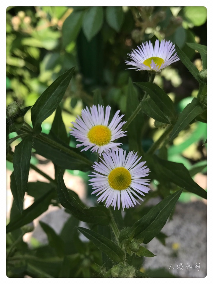 去年,我的小院里飞来了一年蓬的种子,直到开花我才知道是一年蓬(因为我有不认识的植物统统留下的习惯),一直以来都只关注着它的花儿忽视了它的叶子,只那么孤单的一株,却让我欣喜若狂。