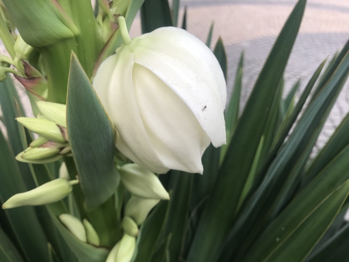 经过一晚的酝酿,第一朵白色的花花更是鼓的跟小灯笼似的,第二朵也在慢慢的展露笑颜。旁边的两株也慢慢的追了上来,一个快要开花,一个正在抽穗积蓄力量