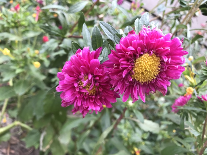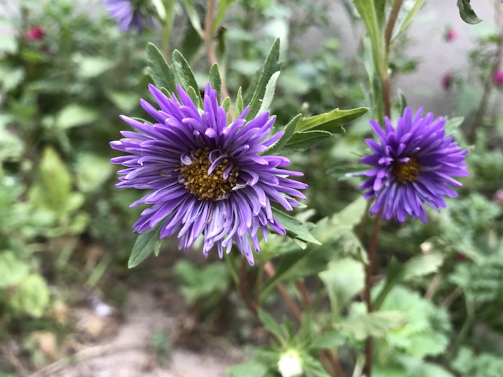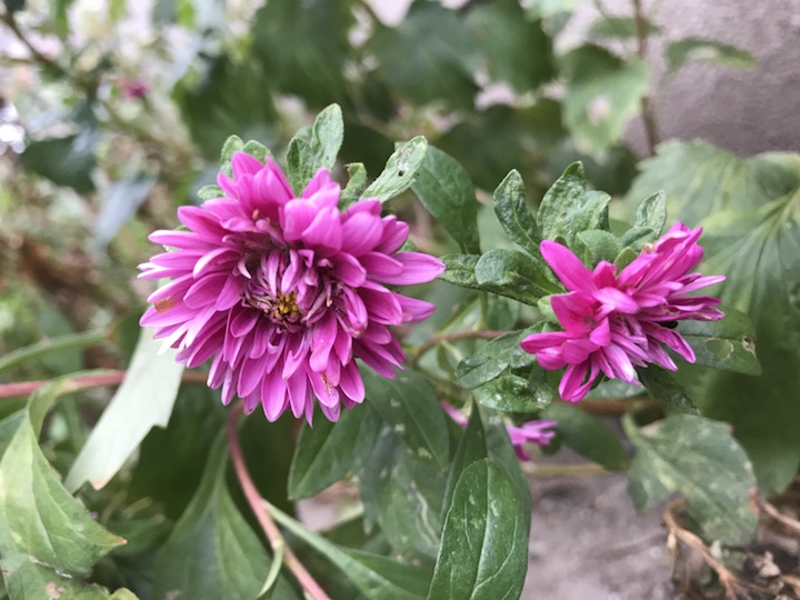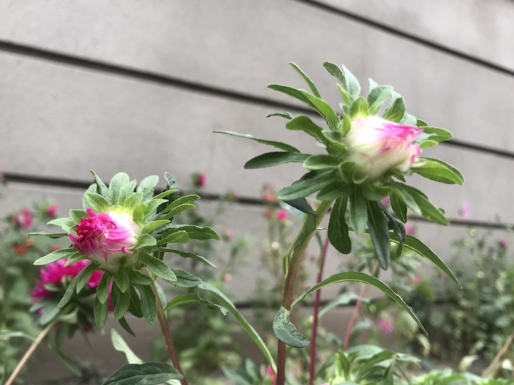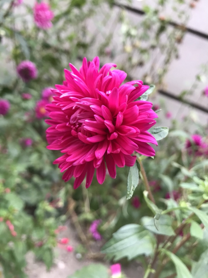 这次看到的翠菊还挺多,玫红、紫红、浅紫三色间杂其中,一派生机勃勃的景象!不过由于时机不对还是晚了点,红色的尚还在花期,艳丽抢眼,可紫色的却是败落的寥寥无几了
