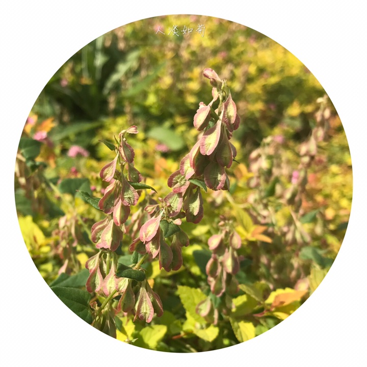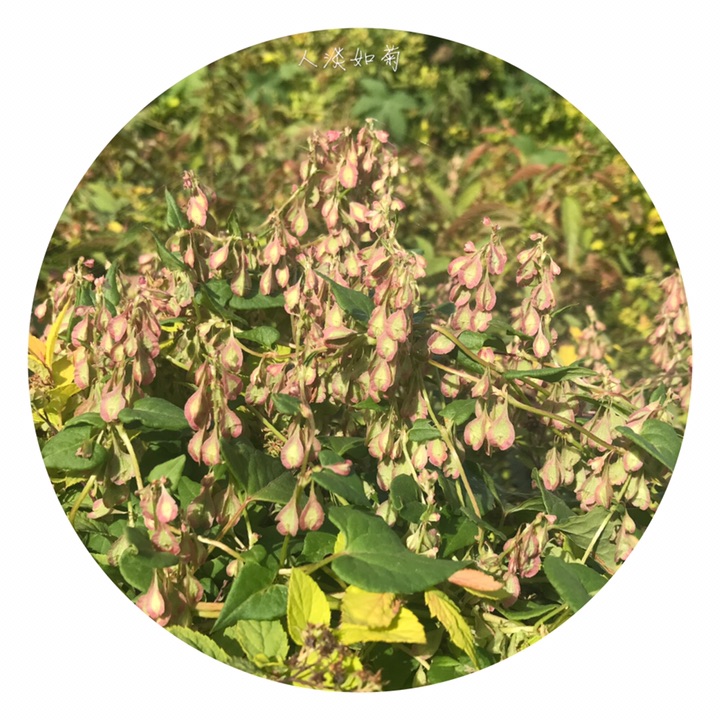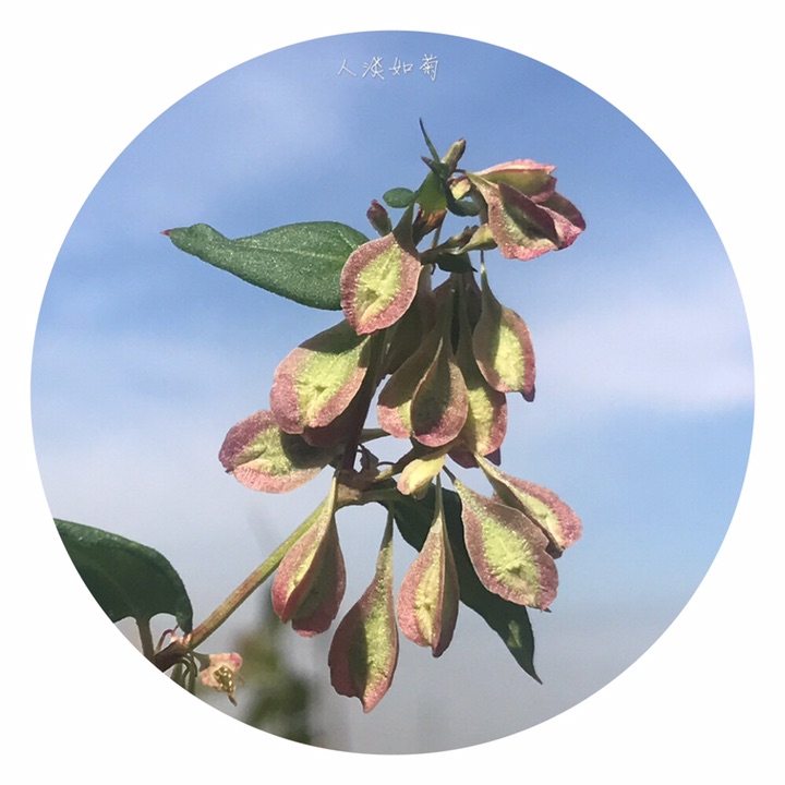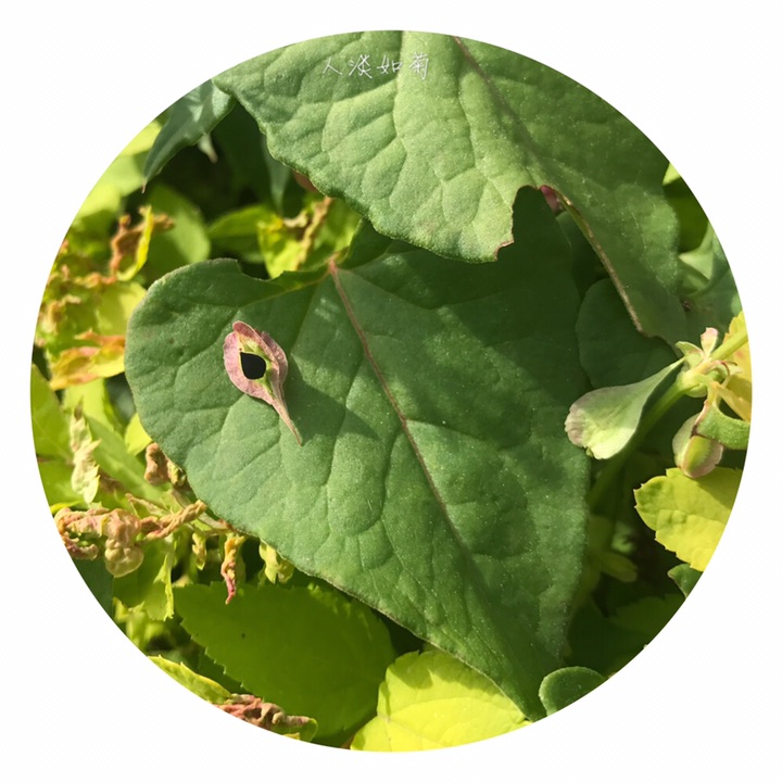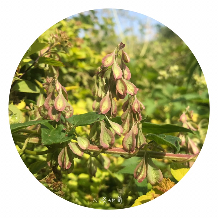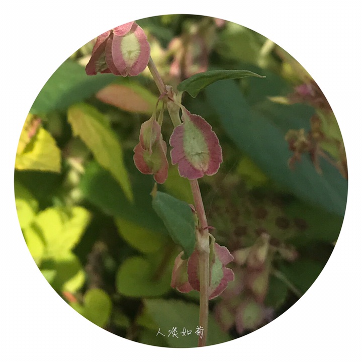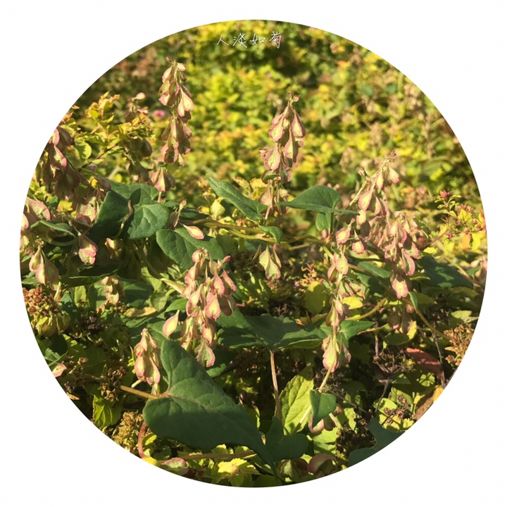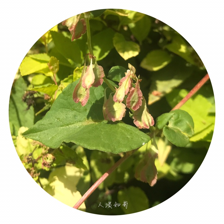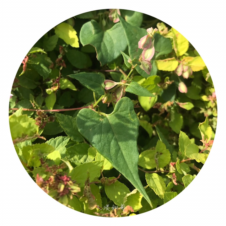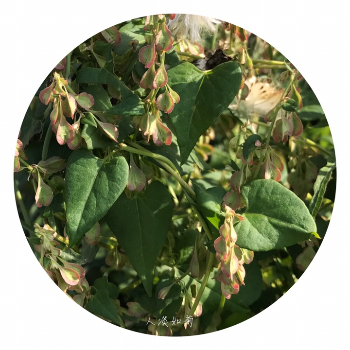 此为昨天在校园里发现的又一新种,高兴!齿翅蓼,拉丁名Fallopia dentatoalata (Fr. Schm.) Holub。蓼科蔓蓼属,一年生草本,茎缠绕,长达2米,有不明显的肋条,平滑至粗糙,多分枝。托叶鞘膜质,褐色,上缘平截,无毛;叶柄长,叶心形,基部心形,先端渐尖,表面绿色,背面色稍浅,有网脉隆起,脉上及边缘常有乳头形鳞片状突起。花序为具小叶的总状花序,顶生和腋生;苞片筒状,长约1.5毫米,具4-5花;花被5裂,内2裂片较小,上缘自色或微带红色,外3裂片特大,背部有翅,翅楔形下延,渐狭细呈梗状,与花梗相接,在中部以下形成关节,花被和花梗随果实发育增大增长;雄蕊8,不等长,比花被短,花药白色,花丝细,2花丝基部之间生1绿色小腺(干标本很难见到),花柱短,3裂,柱头头状,稀流苏状。坚果三棱形,长4-5毫米,黑色,具点状雕纹,完全包藏在花被内。染色体2n=20。花期7-8月,果期9-10月。生山坡草丛、山谷湿地。