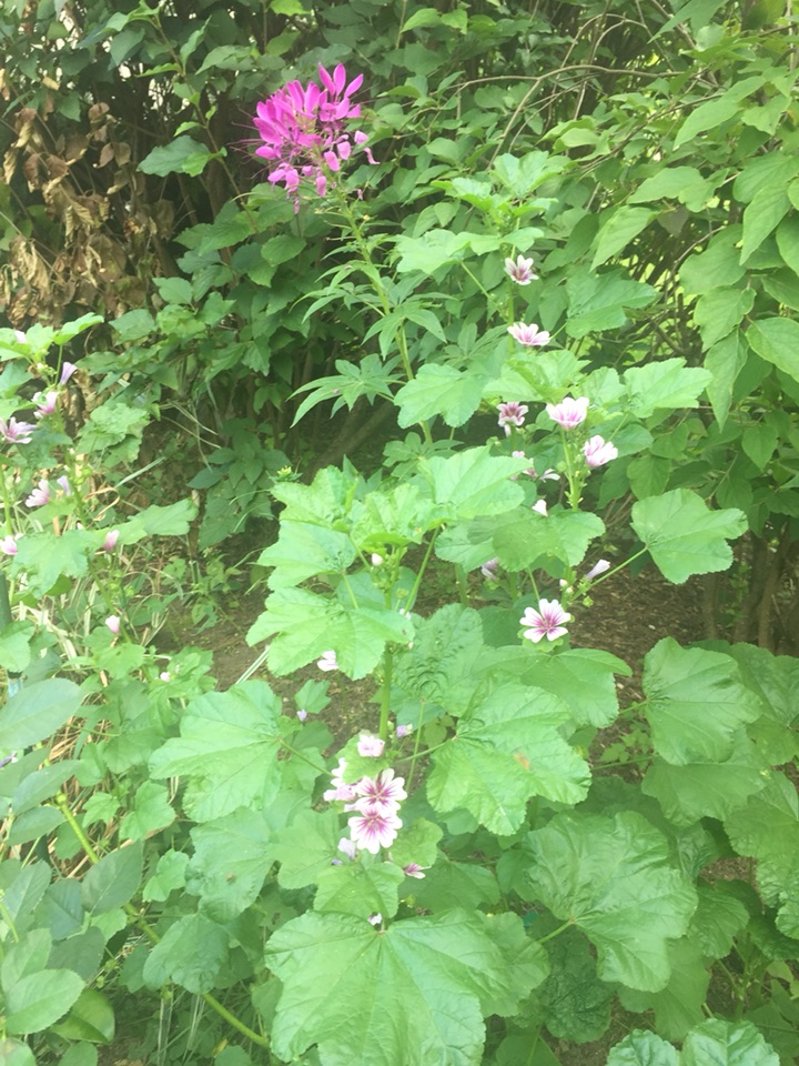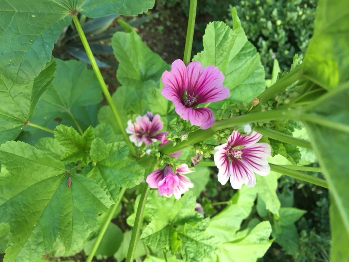 今年锦葵都快到入秋了才开始开花儿 所幸这入秋后的气温一直保持着盛夏季节之势 看来还能再开上一阵子吧!其实,这晚到的花期完全归功于我院子里的那几只小🐰🐰 因为每每一株长大、长高一些 它们便不客气地咬喰;只好不停地东移西挪、把非常小的一些花苗到处藏植、跟🐰🐰们玩儿起了“藏🐱🐱” - 功夫不负我呀,总算长成了几株并开花儿啦!😊😄😜