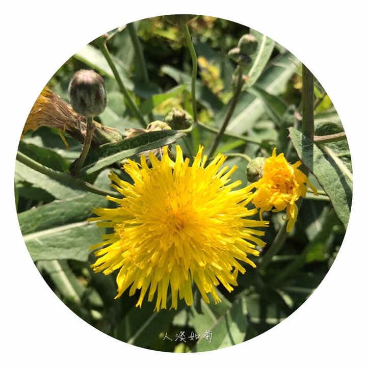 苣荬菜,拉丁学名Sonchus arvensis Linn. 别称荬菜、野苦菜、野苦荬、苦葛麻,苦荬菜、取麻菜、苣菜、曲麻菜。为桔梗目菊科苦苣菜属多年生草本植物,全株有乳汁。茎直立,高30~80厘米。地下根状茎匍匐,多数须根著生。苣荬菜又名徐徐菜、败酱草(北方地区名),黑龙江地区又名小蓟,山东地区称作苦苣菜、取麻菜、曲曲芽,主要分布于我国西北、华北、东北等地,系野生于海拔200米—2300米的荒山坡地、海滩、路旁等地。能食用,东北食用多为蘸酱;西北食用多为包子、饺子馅,拌面或加工酸菜;华北食用多为凉拌、和面蒸食。