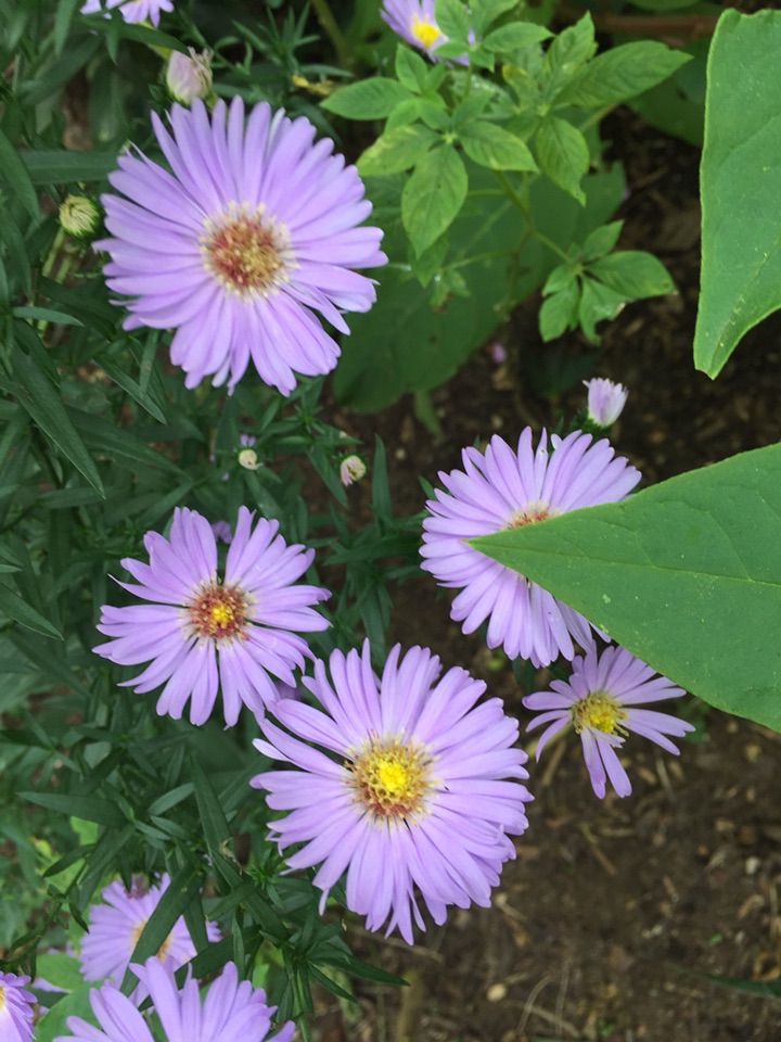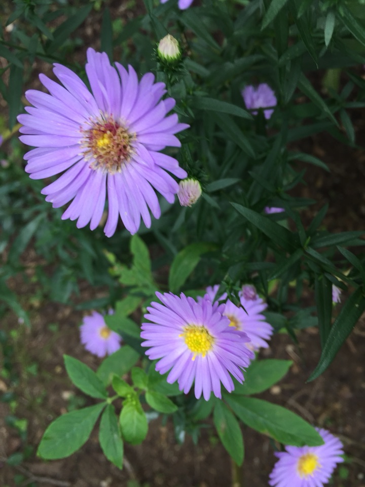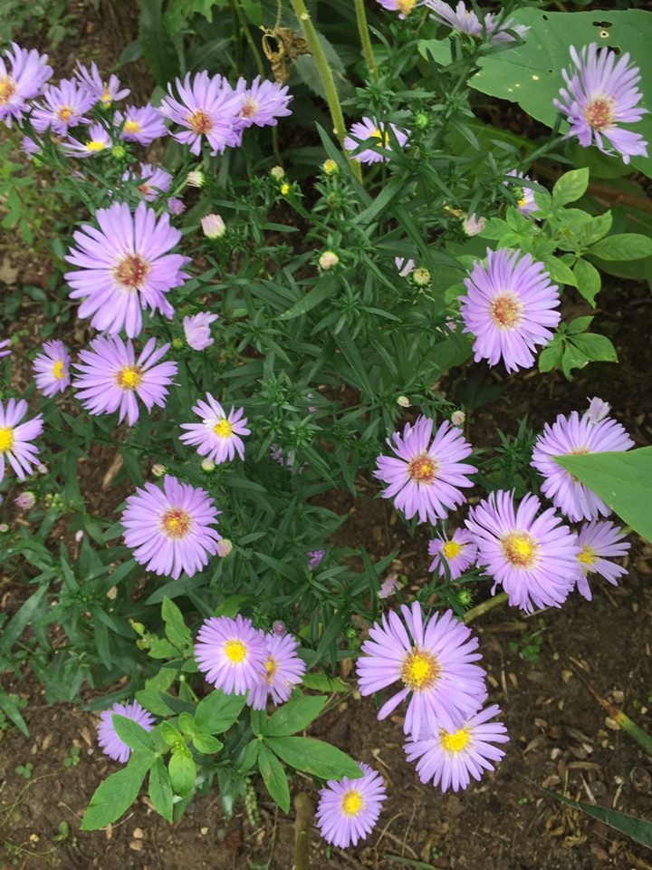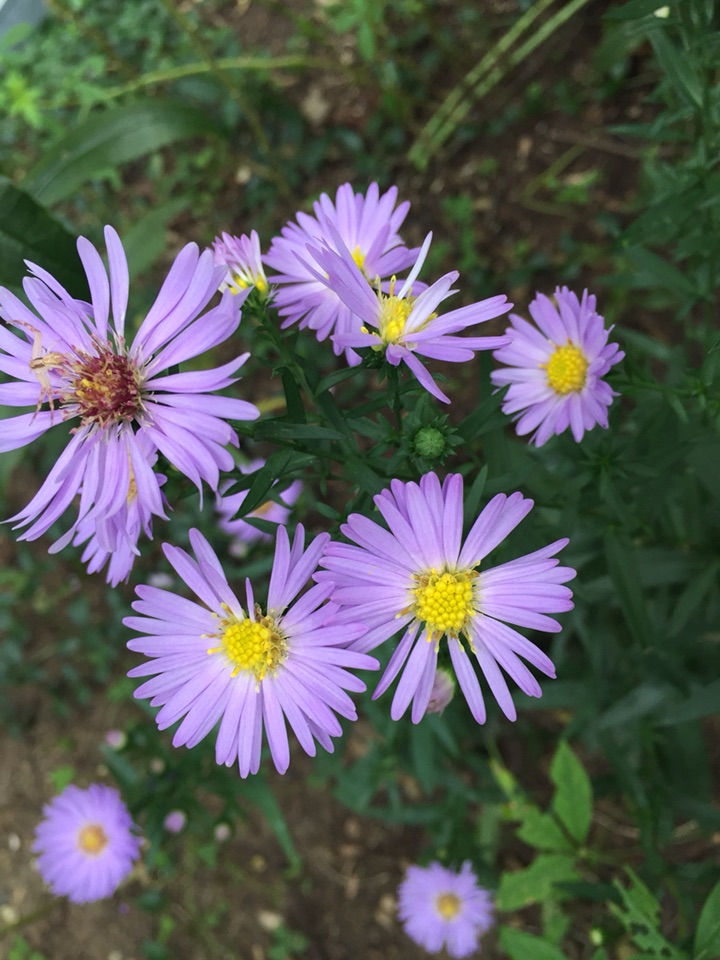 这两天在一堆高而杂的花草中突然看见这一丛紫花儿开得灿烂 觉得有些惊喜因为我居然不记得什么时候在那个角落里种了一株此花! 知道这是aster的一种却不知具体是什么 形色了一下 有点不确定 究竟是紫菀还是荷兰菊?从花形、色态觉得更像是紫菀 可是从开花时间来看倒是荷兰菊更贴近 读了一会儿 看到原来荷兰菊又名纽约紫菀 这下释怀了 - 那就是她啦!