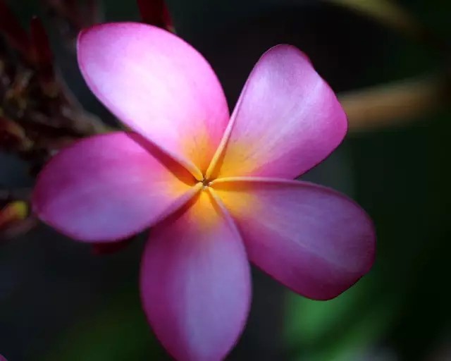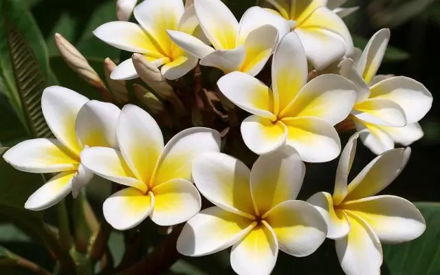 鸡蛋花:鹅黄缀白花,点点满枝桠。
