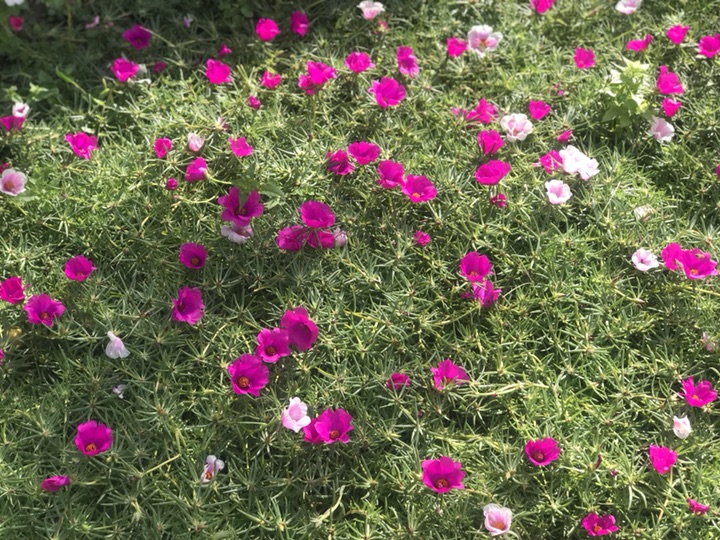 太阳花看了不少,看来看去还是万寿公园的这片最美。两种颜色间杂在一起,华丽丽的给大地铺上了鲜花地毯