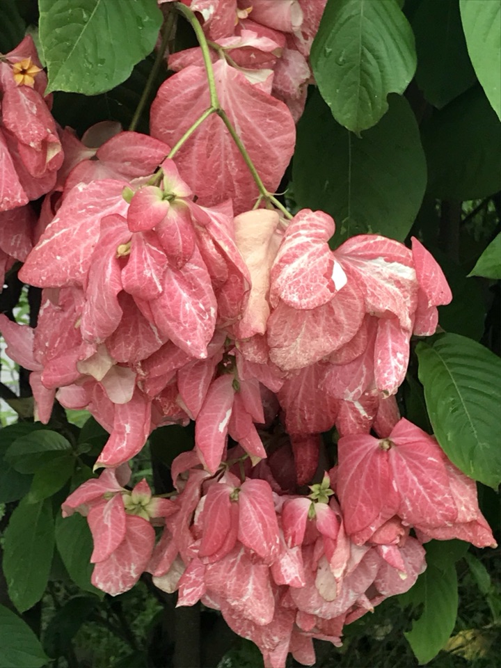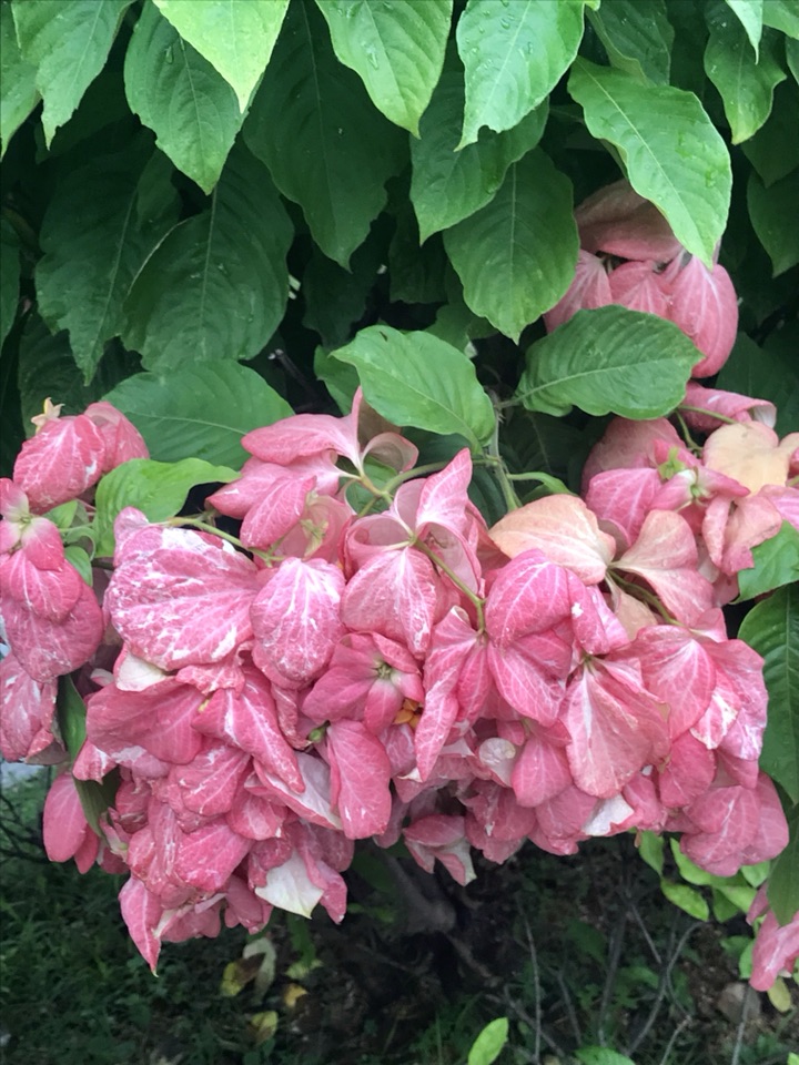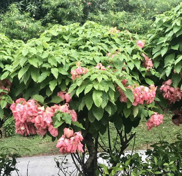 6月初就見粉紙扇盛開,至今仍在開放,從夏至秋,“嫩蕊商量细细开”,花開已百日,粉色萼片層層疊疊,厚重的垂下低頭,亦然是對土地深深的眷戀。