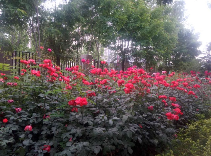 一直觉得人到中年才能感悟植物带给自己的感触。我曾无数次幻想过,人生如果另外有出口,每个出口都有无数的可能性那么每一种人生的区别并不是很大,如果我能重新开始,我宁愿做一个画者,一笔一笔将各型各色的月季花一一画出来,如同莫奈画睡莲一般执着。此刻开放的月季,大气明艳端庄秀美,端详月季的花朵,就会觉得自己慢慢融化在月季温和柔软的花瓣里,满身的戾气和浮躁不复存在,瞬时心性澄明,整个人都变得清澈见底!很多年了,每当月季初开时我都恍惚中感觉我还是那个素衣的少女,在月季的花海中来回的穿行,嗅一嗅花香,听一听蝶语,而我的父亲则坐在窗前的桌子上看着我嬉戏玩耍!任凭时光如何碾压,这情景这花香却深深的刻在我的记忆中,愈久弥香!
