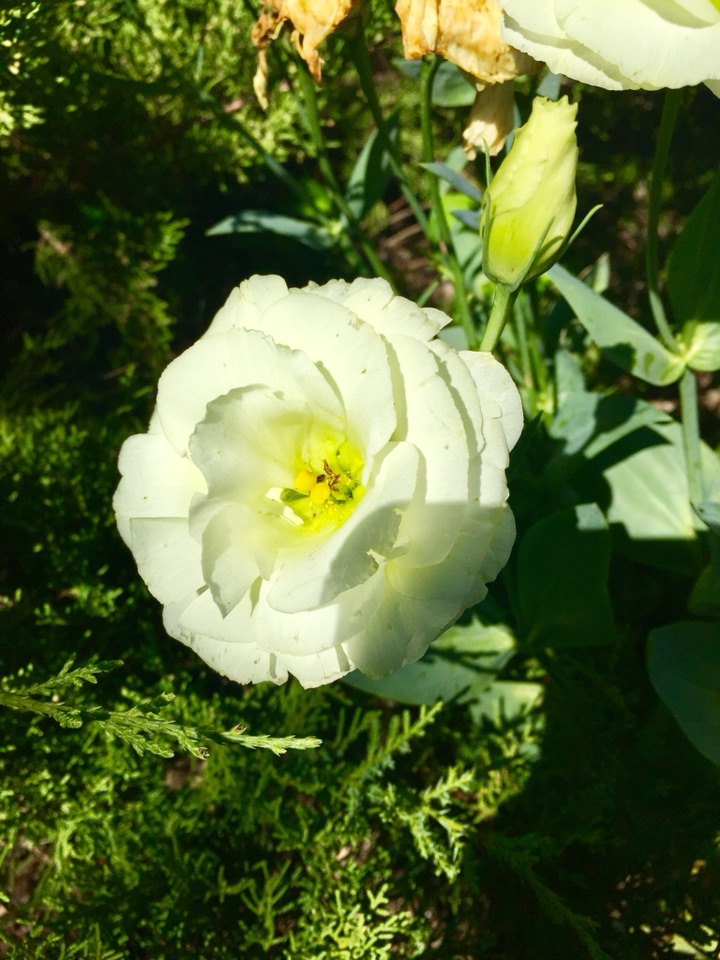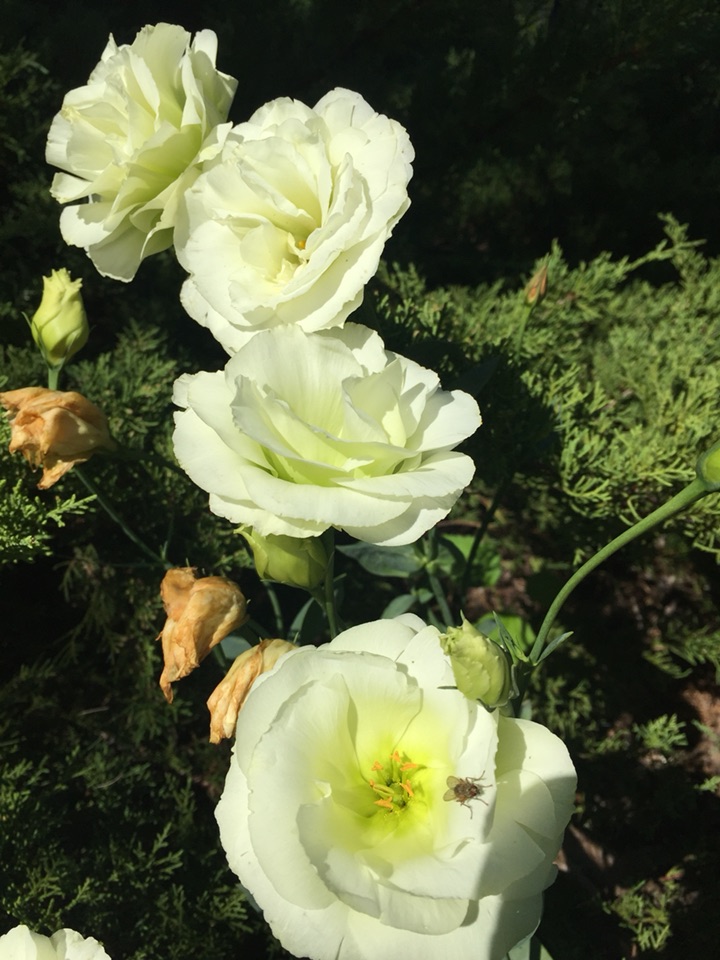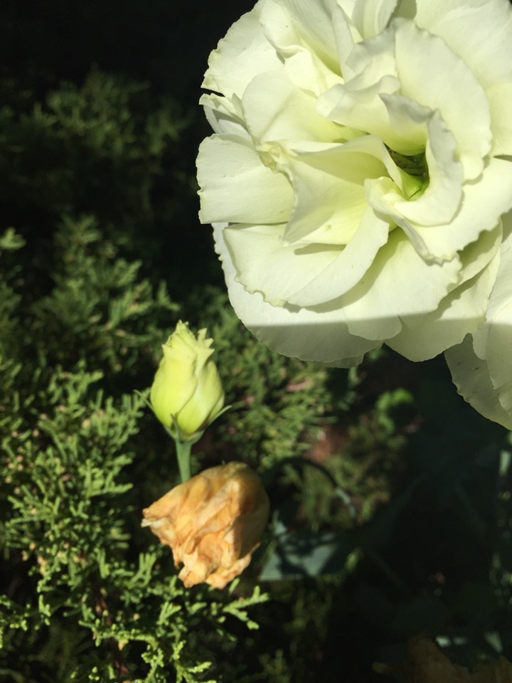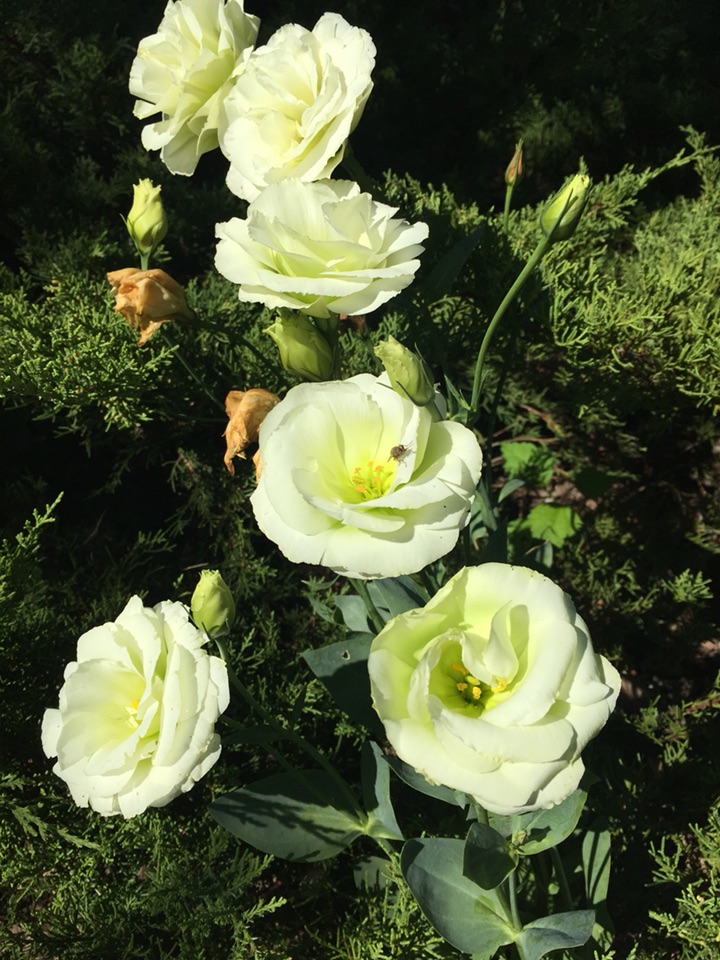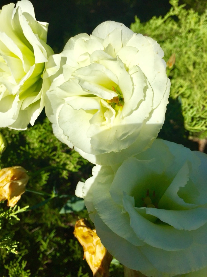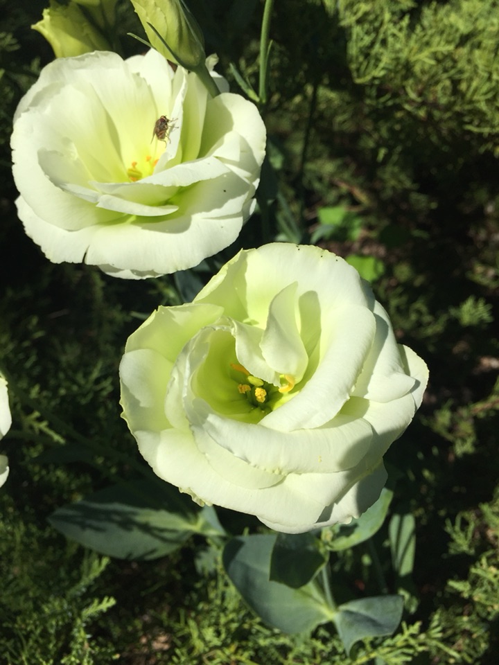 在插花里常常看到洋桔梗花儿 有各种颜色的 非常漂亮;在室外花园里种着的 这是第一次看到 秋天午后的阳光下就那么静静的、全然绽放着 真是美得不像话呀!