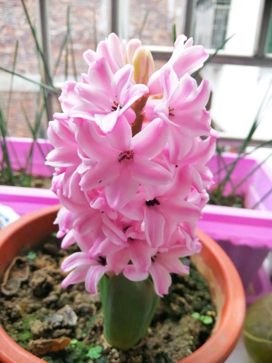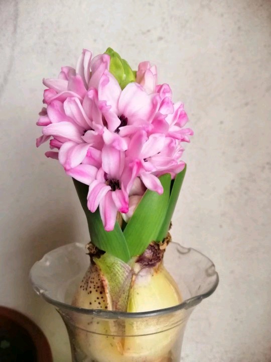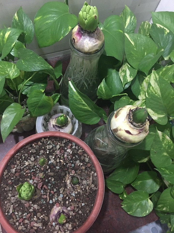 回复@淮屾:其实我真的不是,风信子在南方养很容易夹箭,所以我是用了点方法才成功让它不夹箭的哦,在一开始就要用黑色塑料袋,将瓶子整个包起来,然后马上关小黑屋,放到完全黑暗的环境里,过了几天之后,花茎就会自然伸长了,但是这个必须要在夹箭的初期就开始,如果已经开了,那就太晚了,来不及了,而且水培的是需要加液肥的,也要注意及时换水,才能养得壮,花开得漂亮