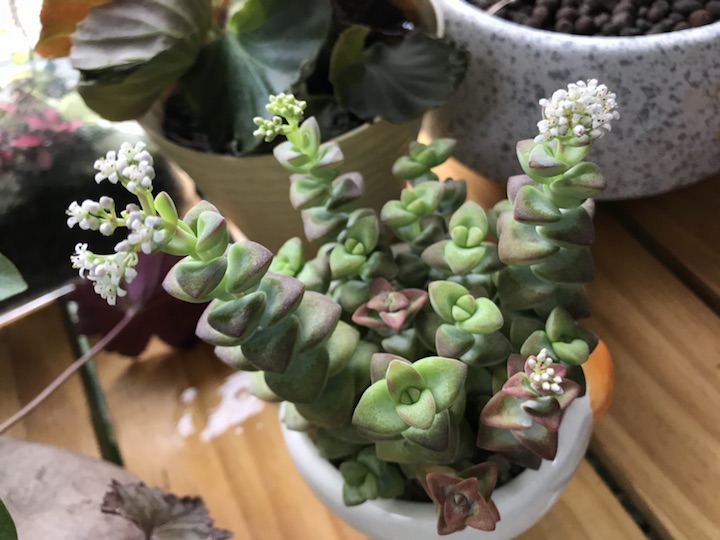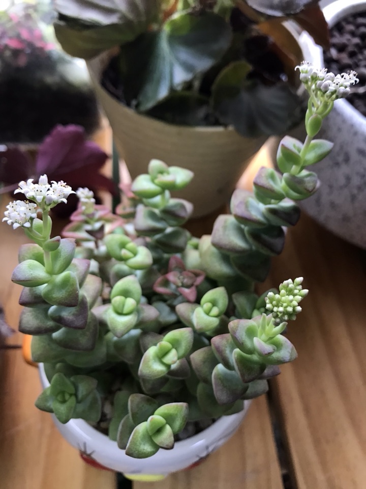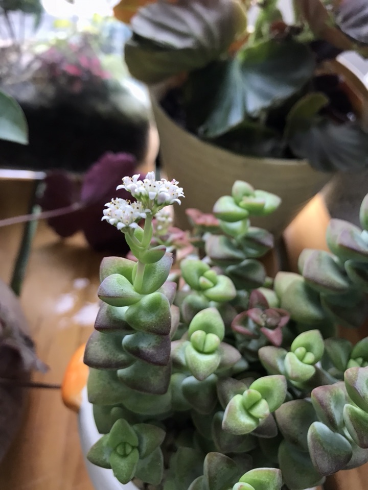 小米星(Crassula 'Tom Thumb')是景天科青锁龙属的多肉植物。不经意间居然看到它小巧精致的簇生白色星星状花花,花瓣5-6瓣,随意的几支开在枝头,不显山不露水却颇使人感到生命的不可思议!