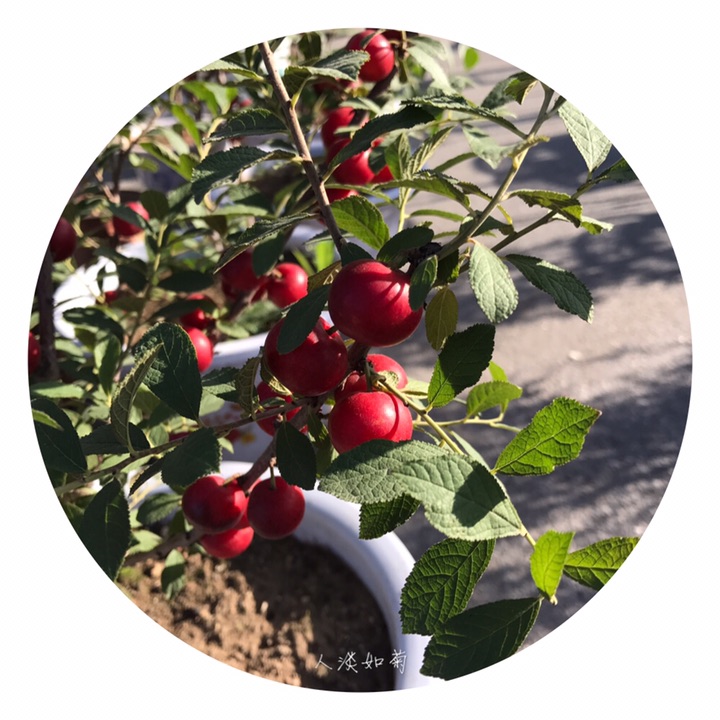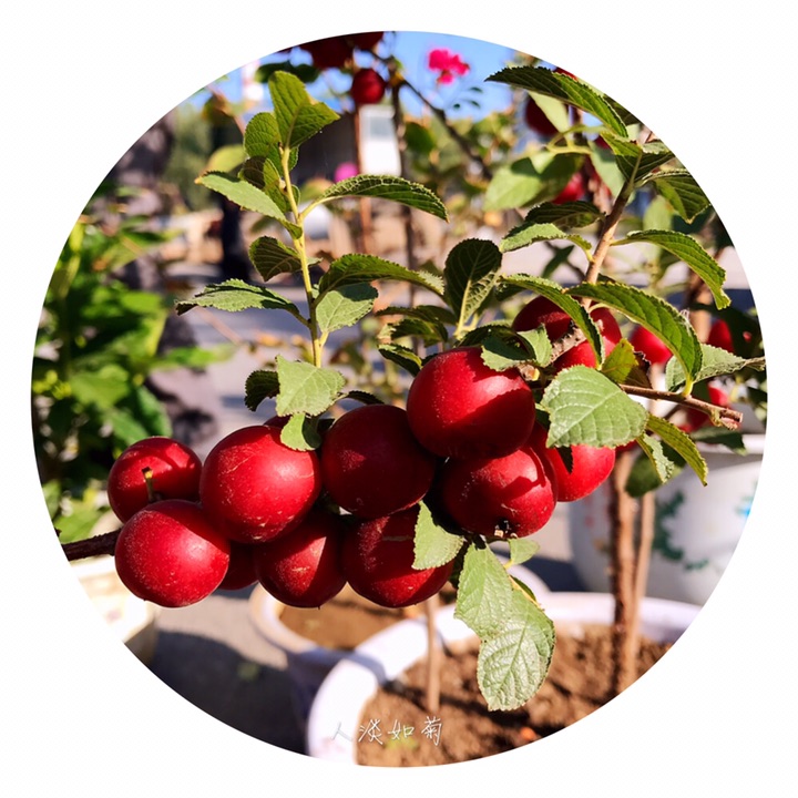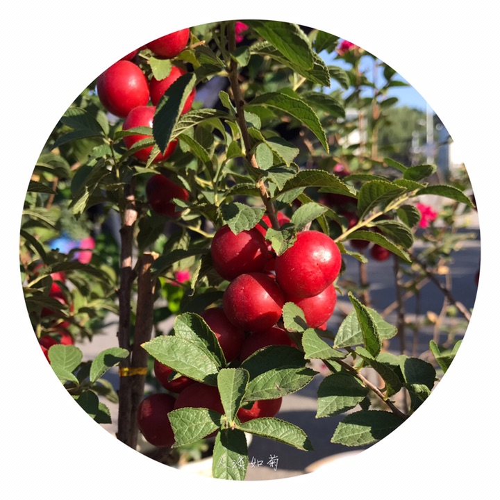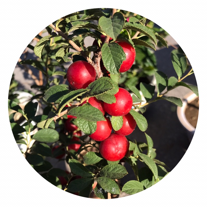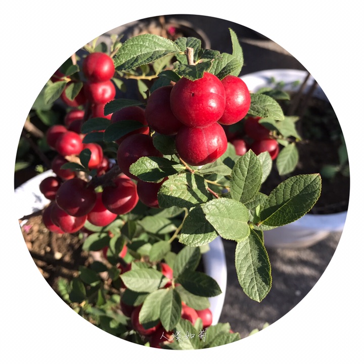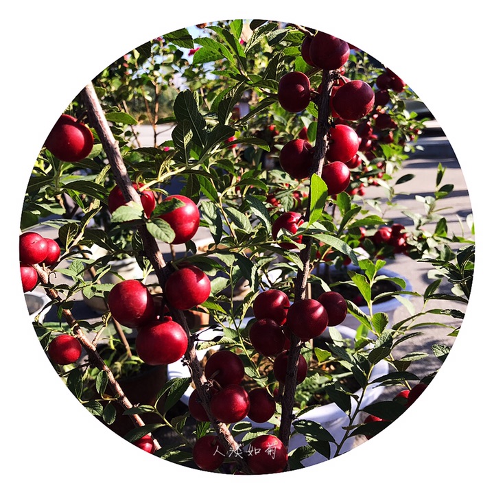 钙果株高0.3~1.3米,植株丛生或单生。一年生枝灰白色,新梢灰绿色;叶小,长倒卵形,叶色淡绿,急尖,无毛,叶缘锯齿钝;花蕾浅红色,花白色;果实圆形或扁圆形,形似樱桃,果面光亮无粉,有红色、金黄色、紫色等,十分美观。花期3~4月,果期7~8月。