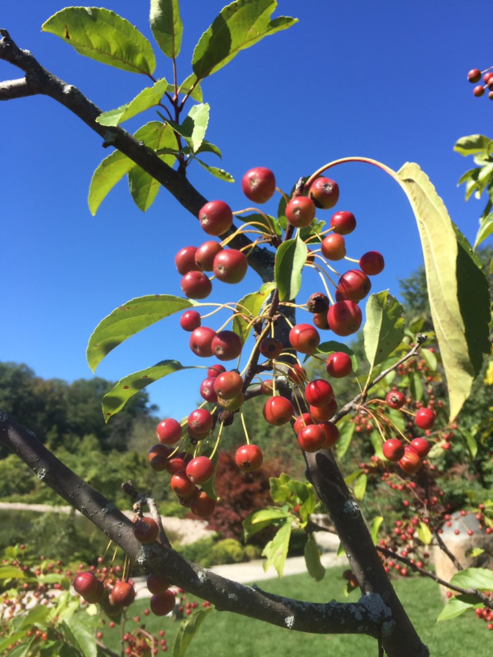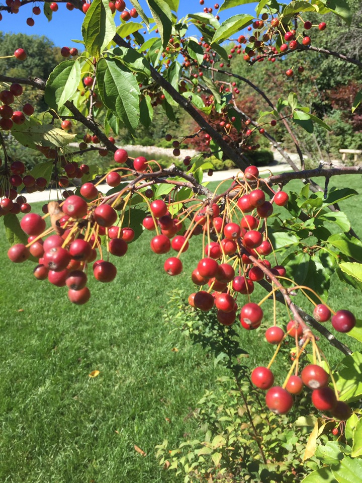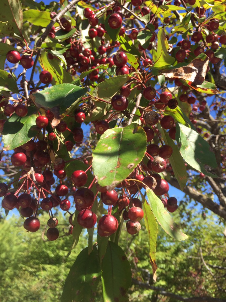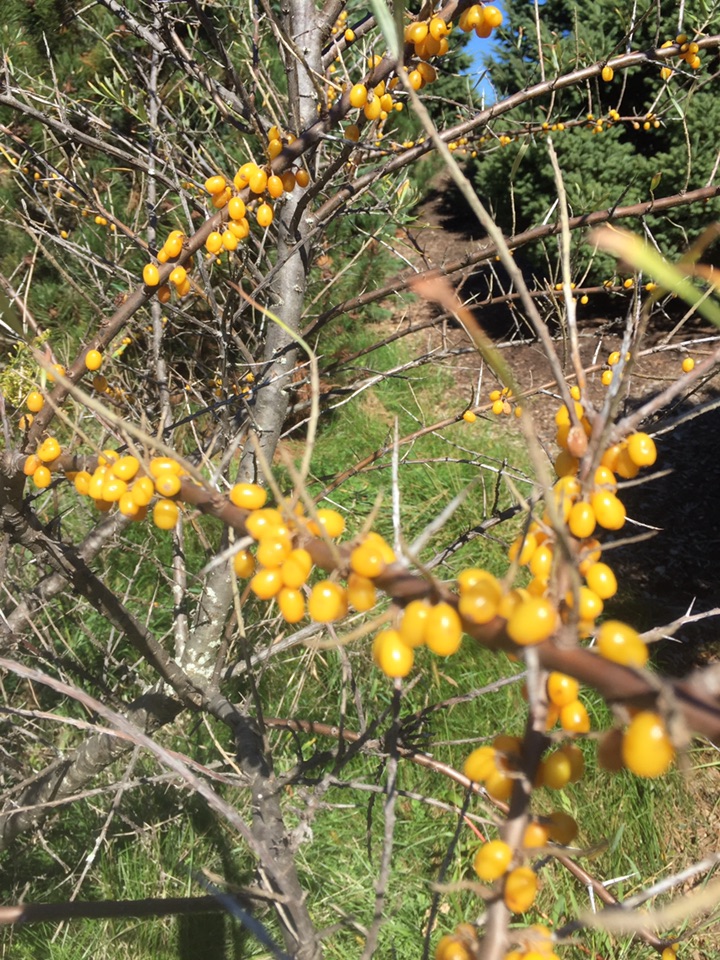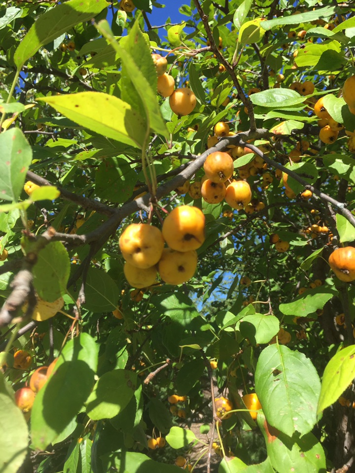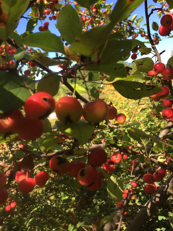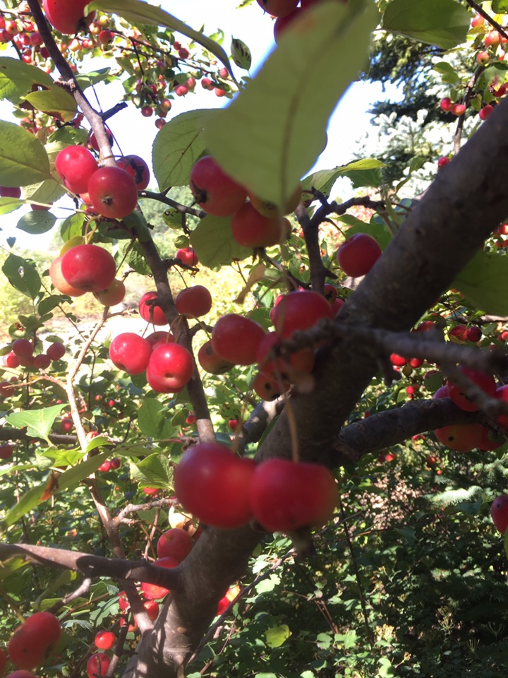 金黄色、红色小果果在枝头上沉甸甸的、好一派秋的景象 可惜分不清都是些什么果果 只认识北美小红果和海棠果