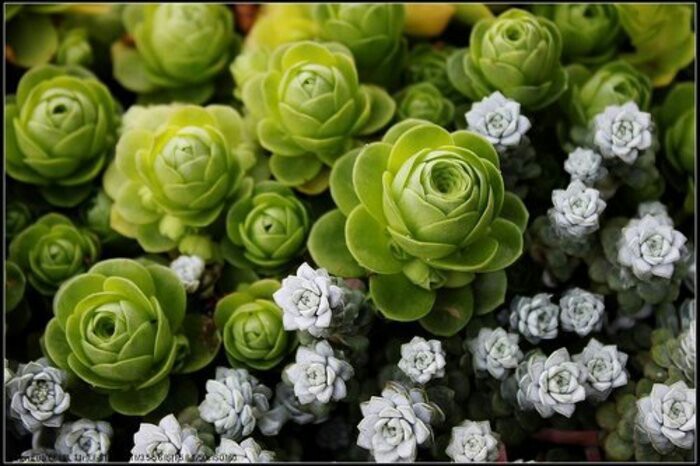 景天科、莲花掌属多肉植物中的很多种类都有生长期叶子展开,休眠期合拢的特点,只不过没有山地玫瑰这么明显,肉质叶呈莲座状排列,株幅依品种的不同差异很大,小型种只有2至4厘米,而大型种能长到30厘米至40厘米或更大。