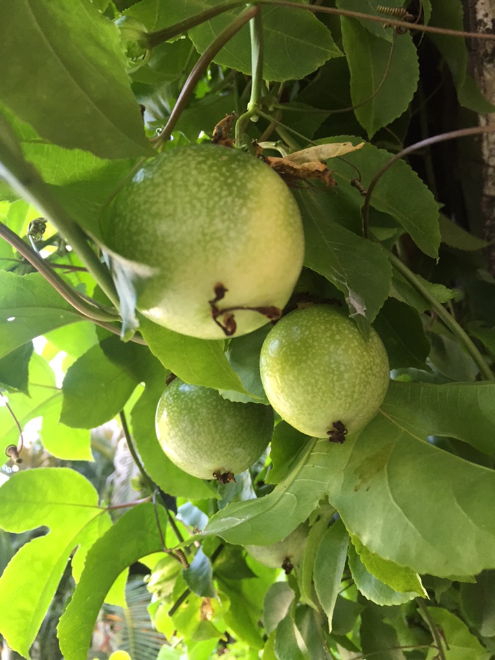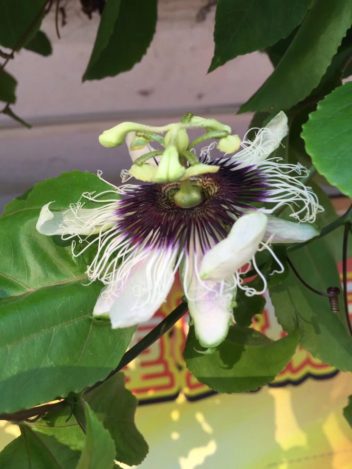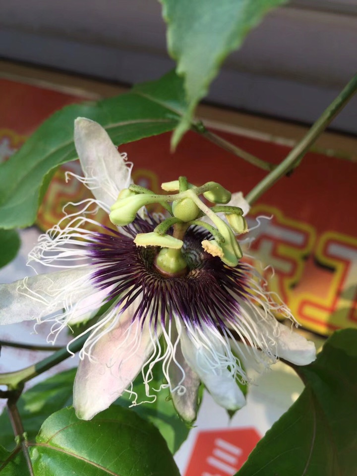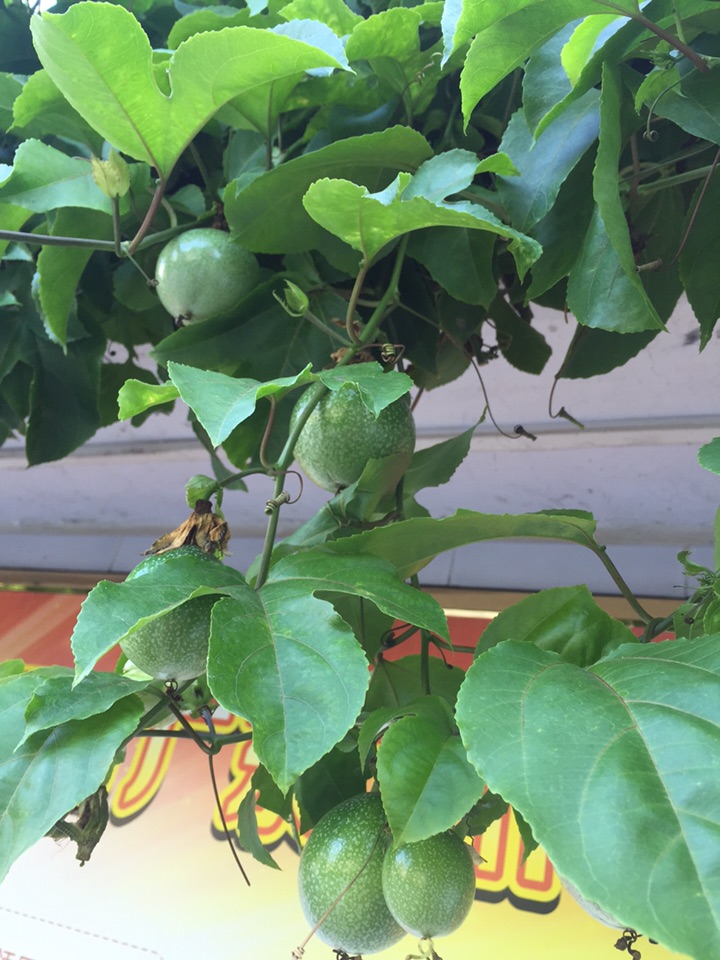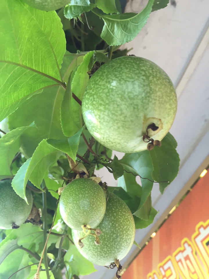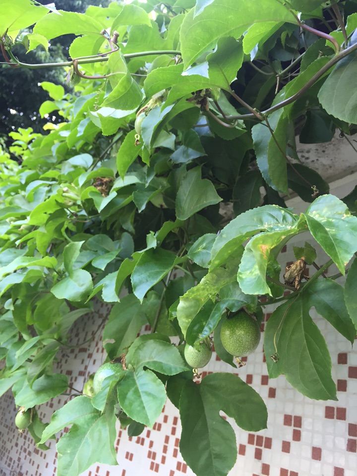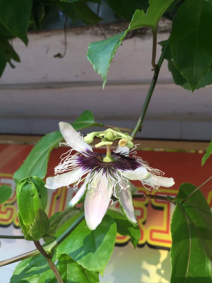 秋至,梅州的西番莲在作最后的绽放。旁边果实累累,又到一年丰收时。