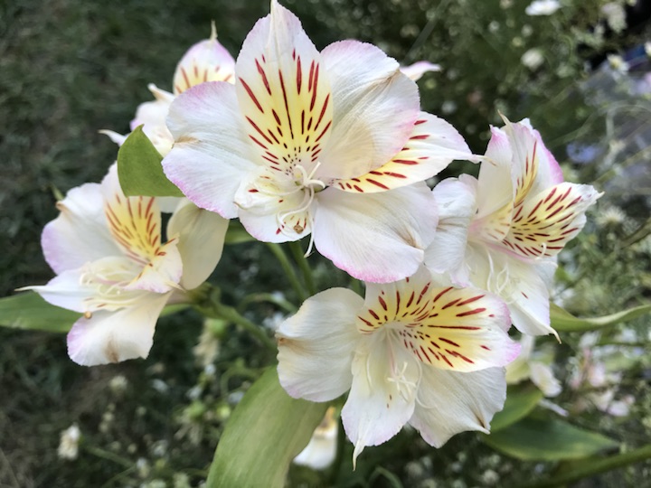 六出花(Alstroemeria aurantiaca D.Don)也叫智利百合、秘鲁百合、水仙百合等,是石蒜科、六出花属多年生草本,原产智利,高60~120厘米。花朵像杜鹃又像水仙,茎和叶子则像是百合花。叶多数,叶片披针形,有短柄或无柄。伞形花序,花10~30朵,花被片橙黄色、水红色等,内轮有紫色或红色条纹及斑点。