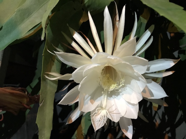 自从去年第一次见了昙花之后,便一直在心里期待着再一次的遇见。因为不知道她的花期,便隔三差五的跑过去瞅两眼,可还是错过了她的第一朵花开。