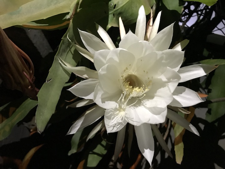 9月30号一早她开出了上次我拍的那批花骨朵儿里的第一朵花,可我还是错过了。我在29号的早上还去看了花骨朵,然后没看到像冰淇淋似的骨朵想着应该还要几天吧,30号一早跑完步途径那里本想着过去看看,又一想昨儿个才看过的,肯定开不了,于是又完美错过了~晚上跟昙花主人聊天了才知道,原来这朵刚好是一早才开的,6,7点的样子……我路过它的时候也恰是那个时候,懊恼莫及