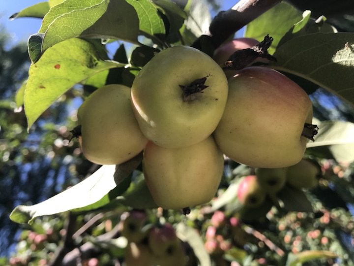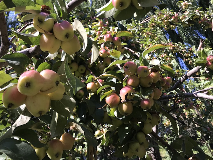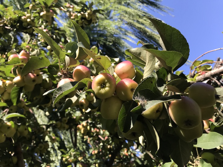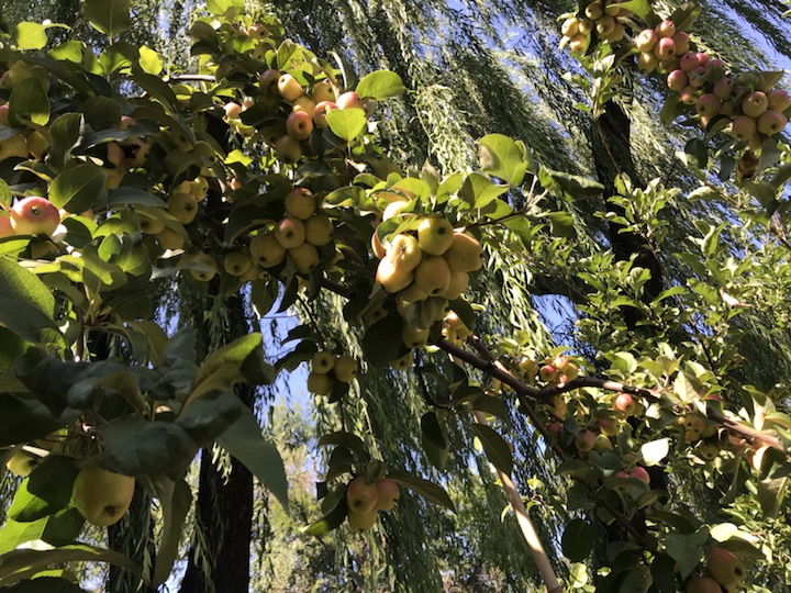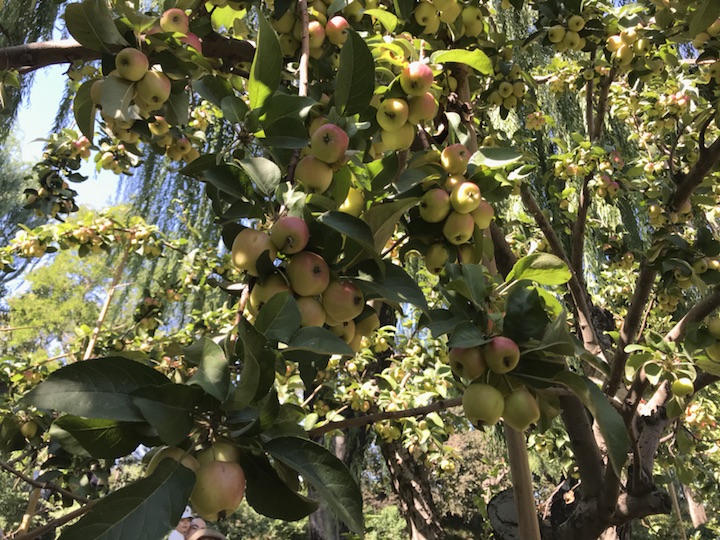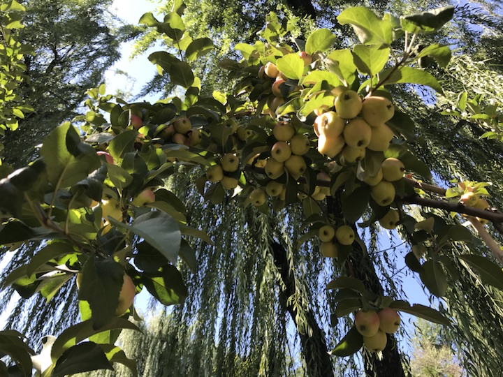 这是宋庆龄故居里的一株海棠,结的果子多的像是要把枝干都压折一般的繁密。果子多且大,在太阳的关照下都慢慢的染上了胭脂红,看着都让人垂涎不已!