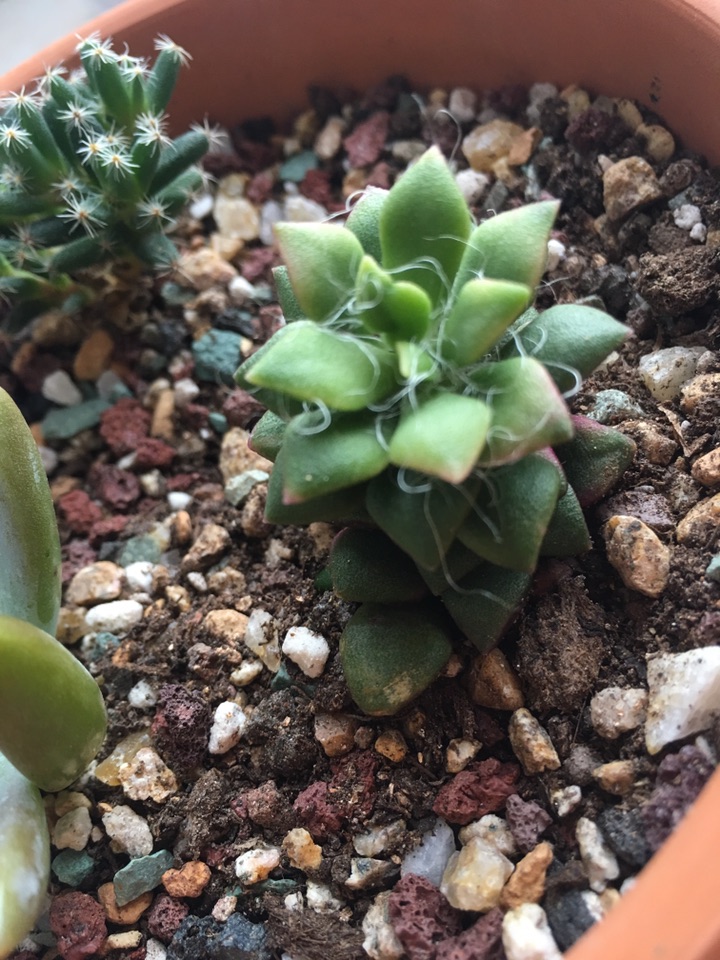 很脏吧?😂10元三盆买回来的,店主也就是随便乱扔,所以脏兮兮。不过新长出来的肉片就干净了,坐等她脱胎换骨。虽然脏,但还是蛮喜欢的,毛毛的可爱。