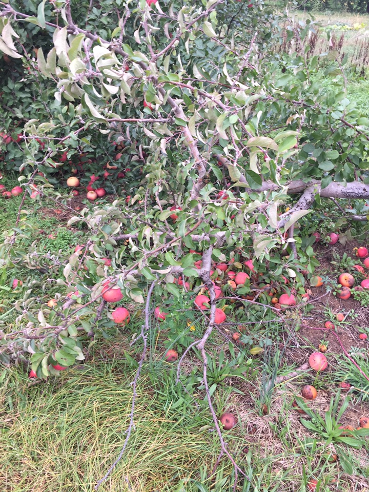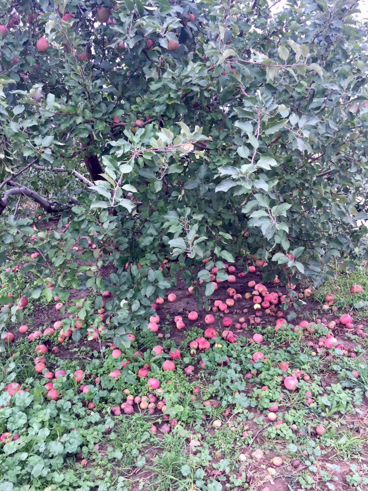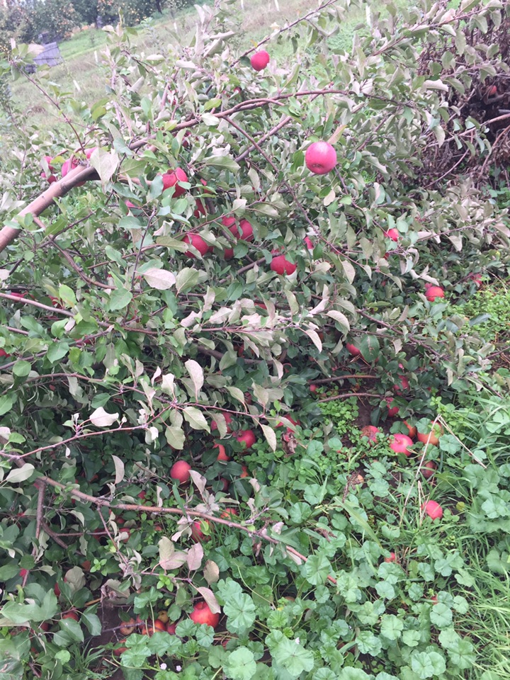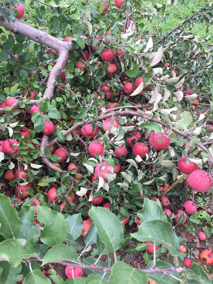 看到有些苹果树已经倒在地上了 可上面的苹果依然完好无损地成长着、成熟了 真是很佩服它们顽强的生命力!