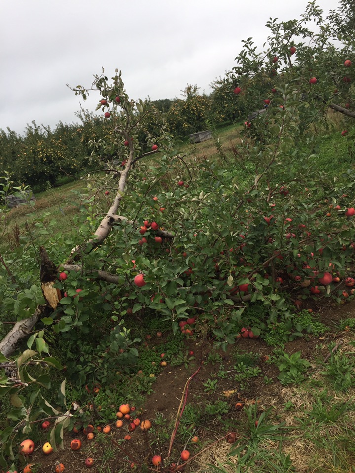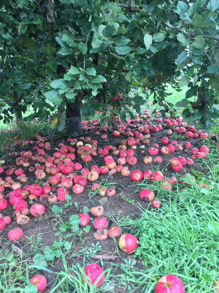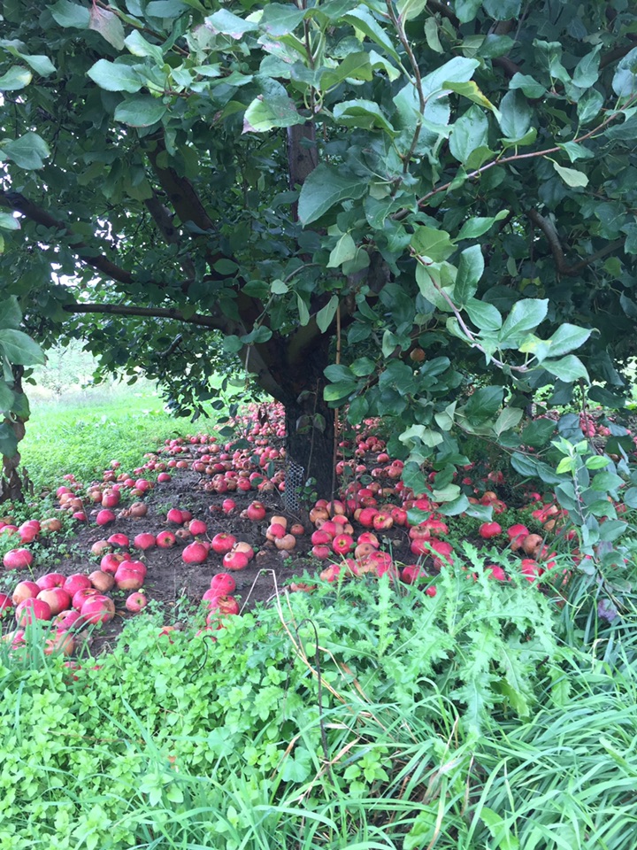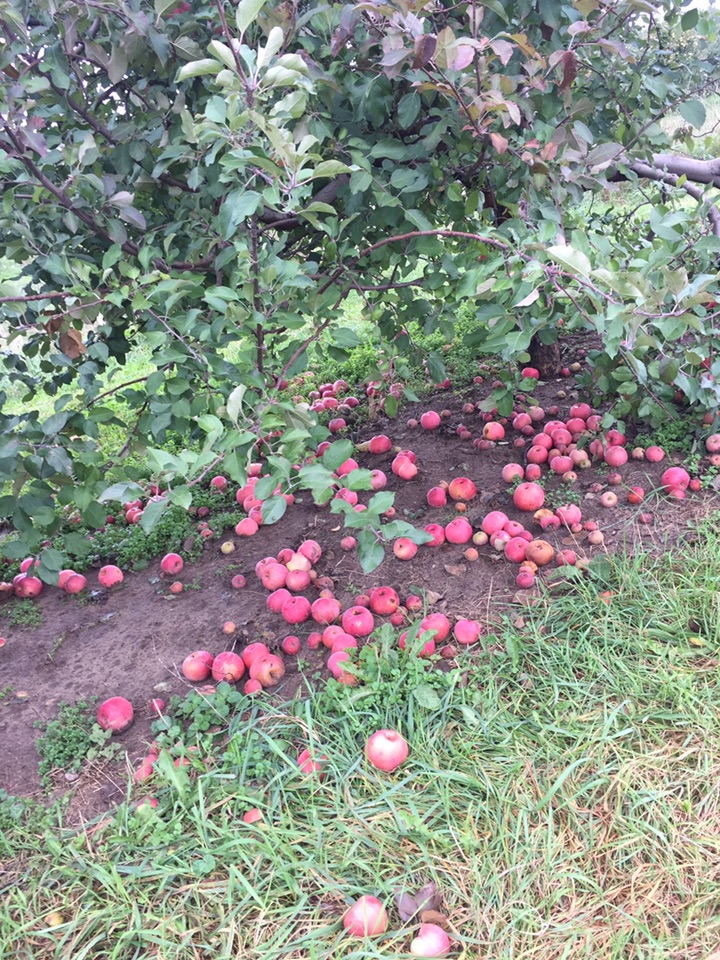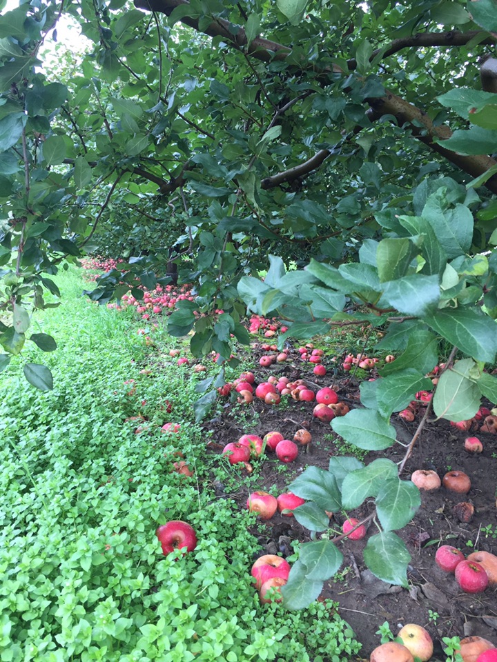 看到有些苹果树已经倒在地上了 可上面的苹果依然完好无损地成长着、成熟了 真是很佩服它们顽强的生命力!