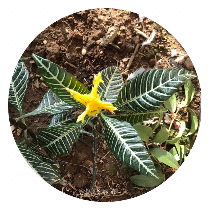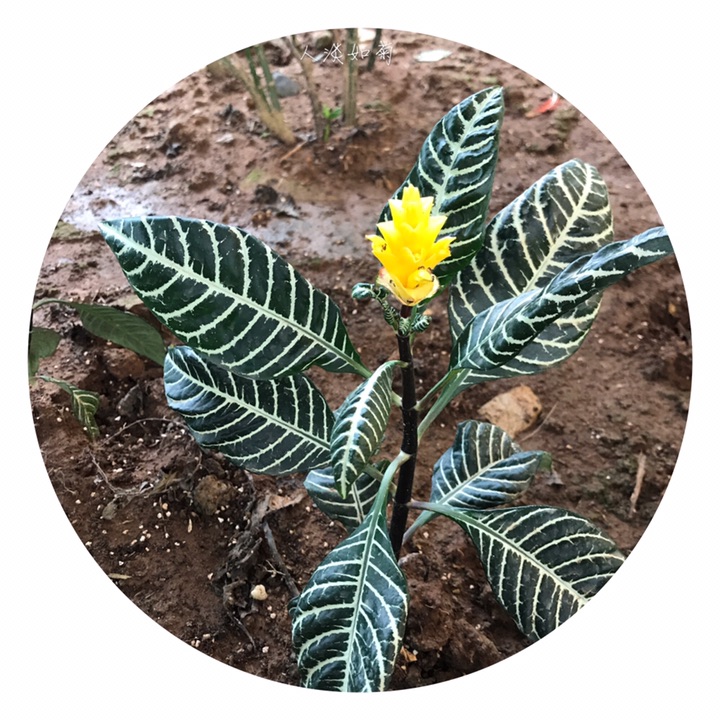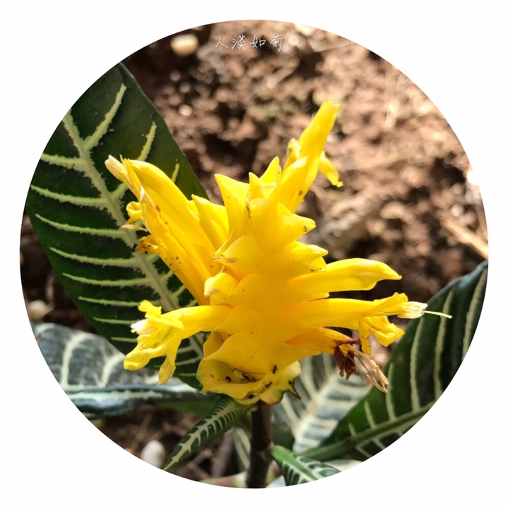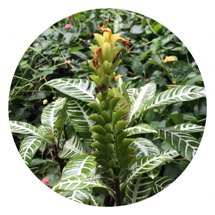 银脉爵床,别称斑马花、斑马爵床。爵床科单药花属多年生常绿灌木。茎直立、方形、植株粗壮。略带肉质。叶对生。卵形或椭圆状卵形,叶子长约15cm~20cm。宽约10cm;叶端尖,叶片深绿色有光泽,叶面具有明显的白色条纹状叶脉,叶脉、叶缘均有波状起伏。因叶片上的斑纹酷似斑马身上的花纹。穗状花序顶生或腋生,花簇金字塔形,苞片金黄色,十分醒目。有时具红色边缘。交互对列包裹着花梗,如同屋顶瓦片样层层重叠。花双唇形,淡黄色,5个萼片。花期夏秋季,但在适宜的条件下全年都可开放。