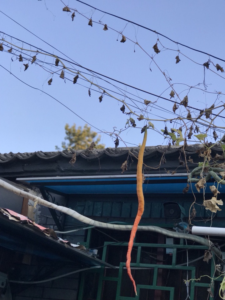这些天的风一直不小,呼呼的刮着,没留神间,蛇瓜便在这浓浓的秋意中慢慢的红了