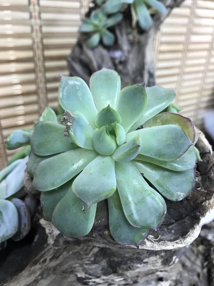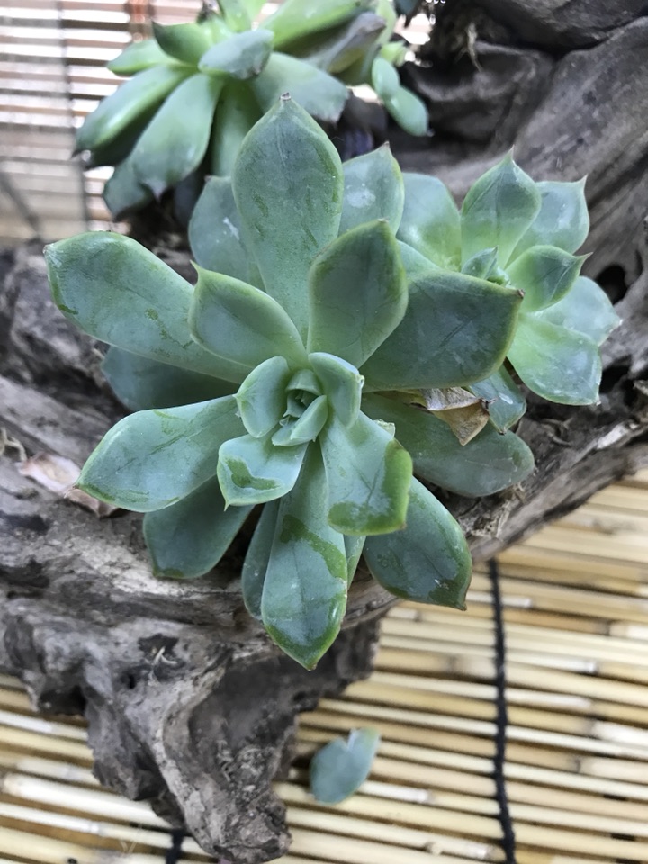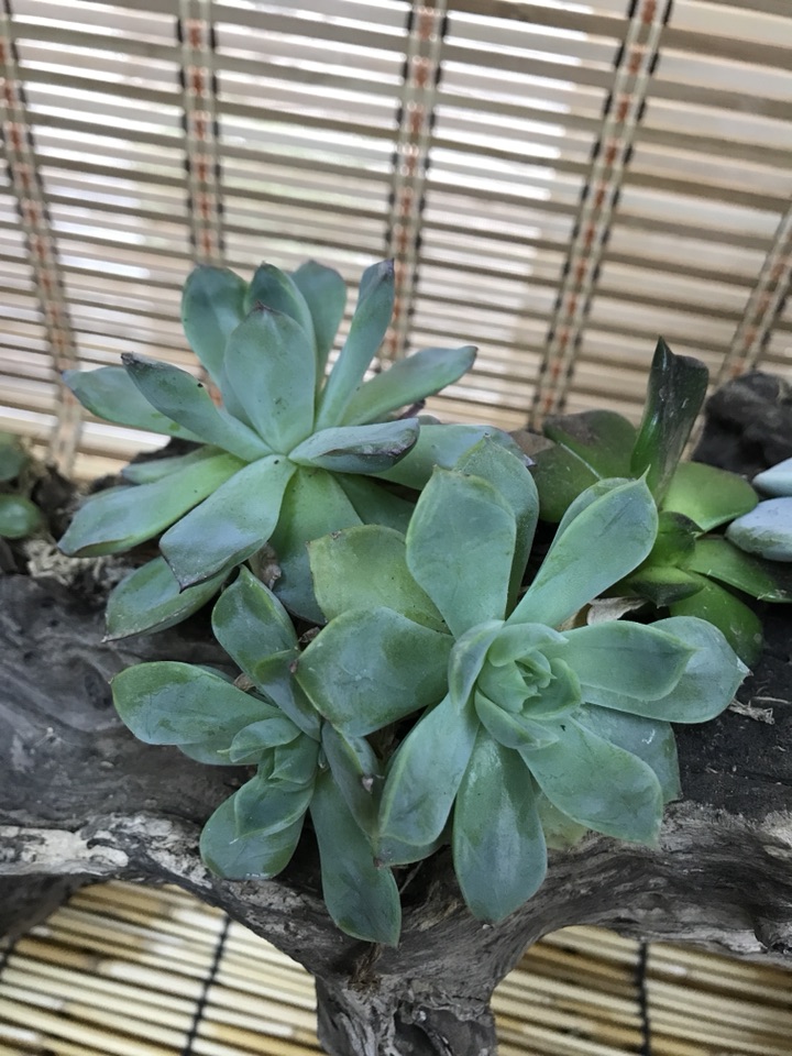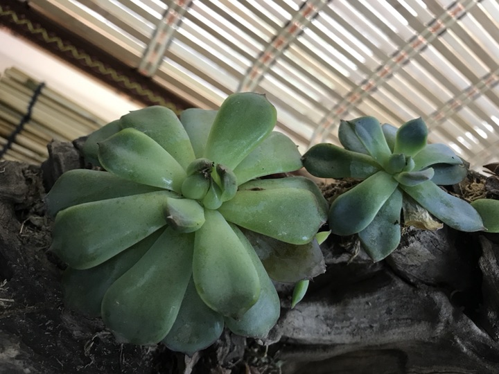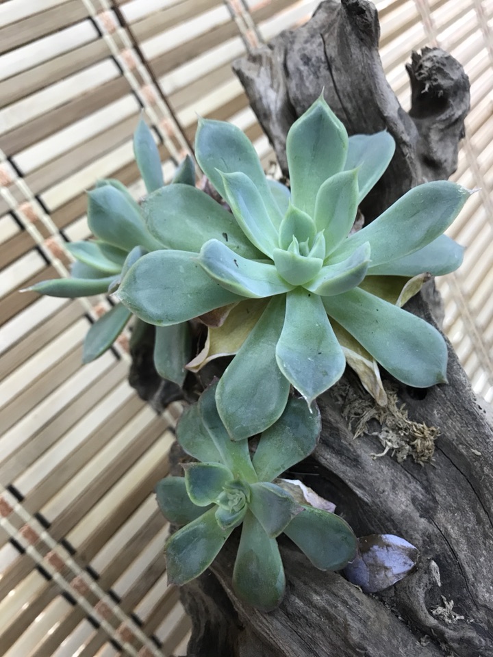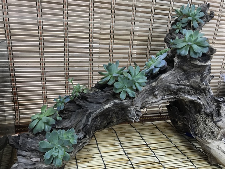 这是什么肉肉我又搞不清楚了,种植在一截枯木上,简单大方,莲花状的肉肉点缀其中,就像是枯木开出了朵朵绿花来