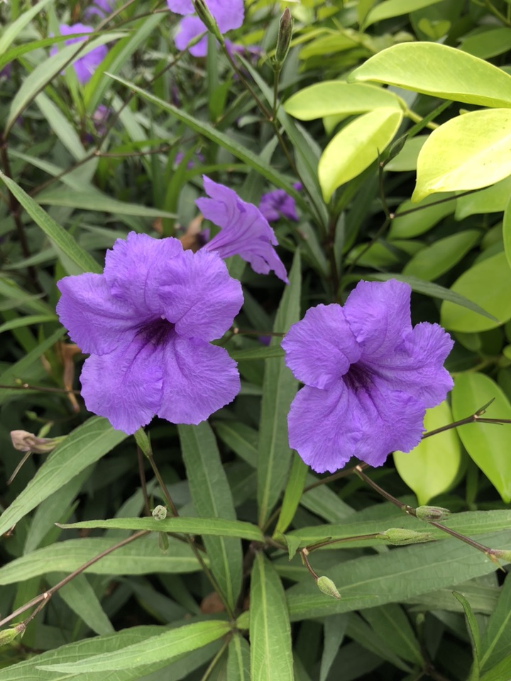 種了2種藍花草,高矮各一; 一早,它們總是盛花燦爛的迎著你; 只是中午左右就掉花了; 沒關係,明早, 他們還是笑容燦爛, 等著你!