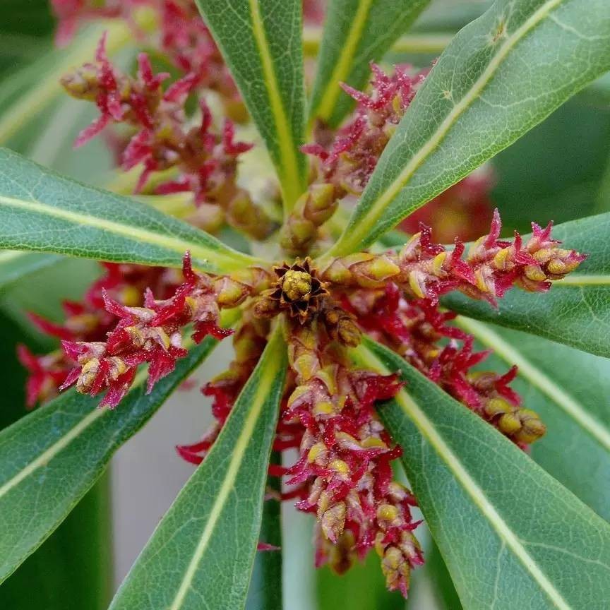 杨梅的雌花序。红色部位为柱头。图片来源同上。