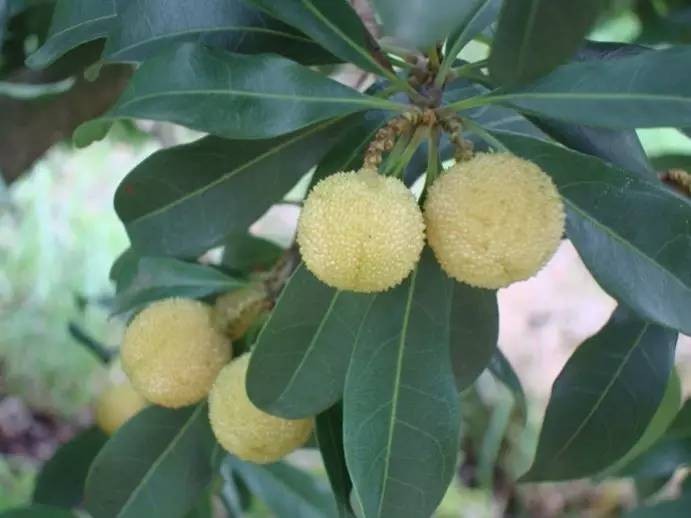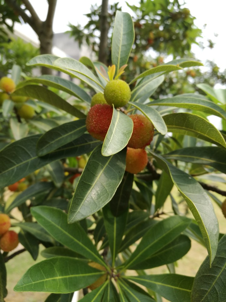 杨梅Myrica rubra属于杨梅科杨梅属,原产我国。其种加词的意思显然指其红色的果实。杨梅是典型的常绿阔叶树,叶片革质。因为不易燃烧,有些地方用作防火林。