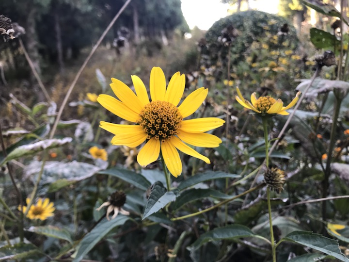 菊芋,学名:Helianthus tuberosus (L. 1753),又名洋姜、鬼子姜、菊藷、五星草、洋羌、番羌,是一种多年宿根性草本植物。 原产北美洲,十七世纪传入欧洲,后传入中国。其地下块茎富含淀粉、菊糖等果糖多聚物,可以食用,煮食或熬粥,腌制咸菜,晒制菊芋干,或作制取淀粉和酒精原料。宅舍附近种植兼有美化作用。菊芋被联合国粮农组织官员称为“21世纪人畜共用作物”。