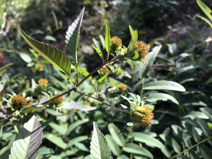 狼杷[ pá ]草(学名:Bidens tripartita L.) ,属菊科鬼针草属一年生草本。别称鬼叉、鬼针、鬼刺、夜叉头,全草入药,性味苦、甘、平,能清热解毒,养阴敛汗。