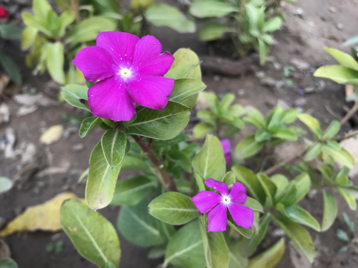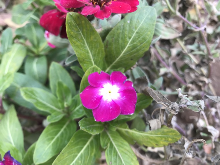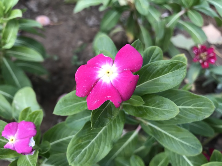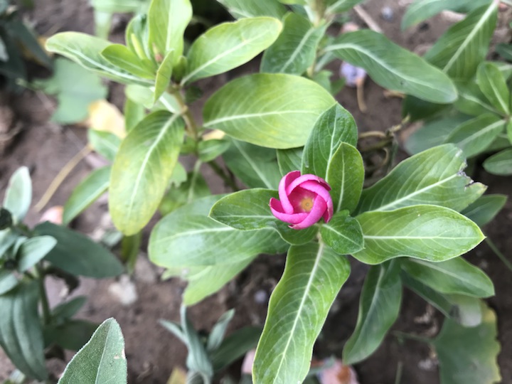 胡同里偶见几株长春花是再正常不过的了,而像这般大规模的装饰于花坛却是第一次见。低矮的植株,绽放着几枚颜色不一却小巧精致的花花,在一片菊海中却也毫不逊色