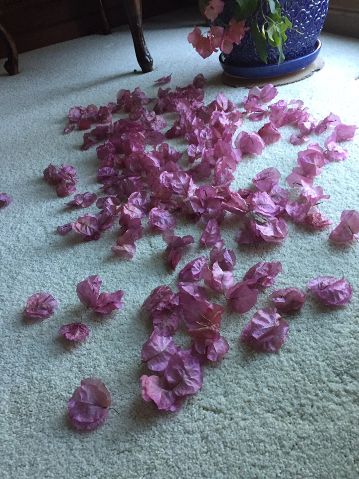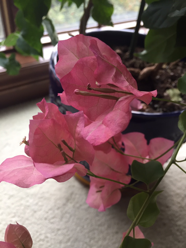 室外秋风萧瑟已有一段时间了 每天走在路上觉得气温是越来越往低走了 令人高兴的是室内的三角梅从九月中旬开始开花儿 一直到现在都还在开 虽说落花儿也已满地了