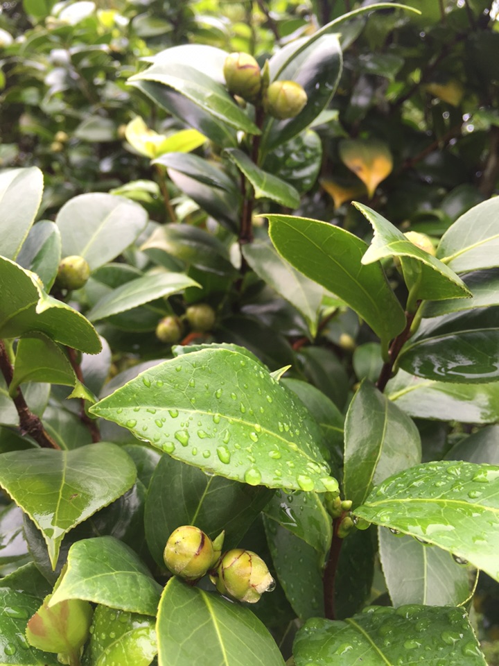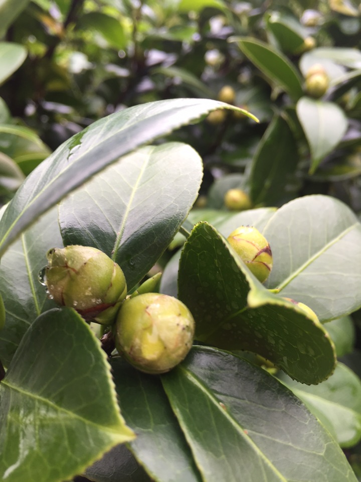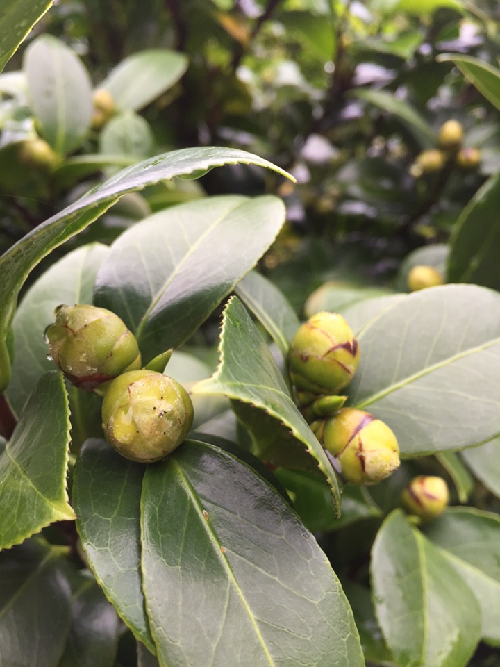 路过花坛,发现山茶花满树的花骨朵儿⋯⋯