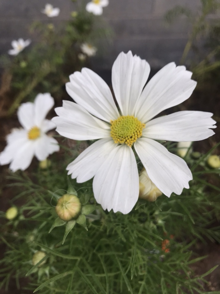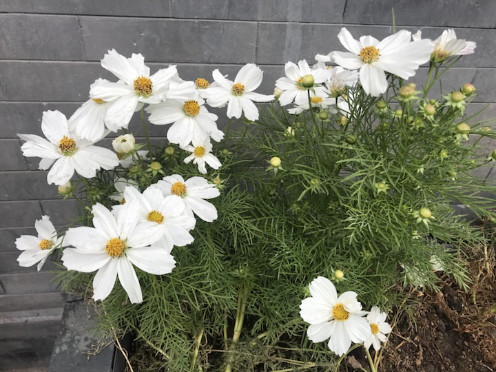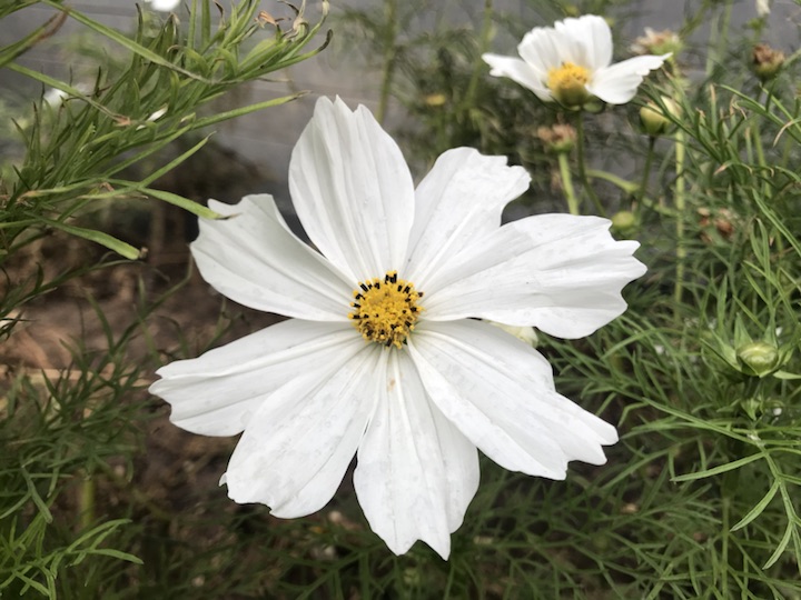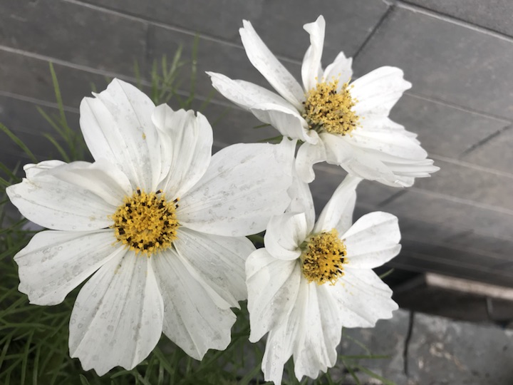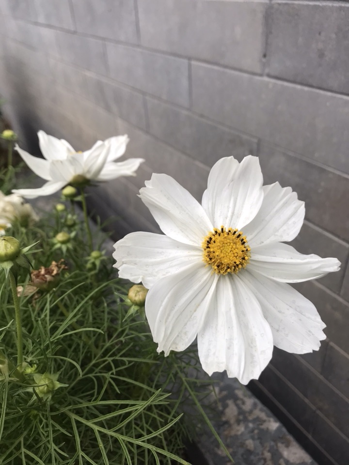 这个秋英就不是那么大了,拍第一张的时候天空还没有飘雨,第二张花瓣上就落上了斑驳的滴滴水印,看着像是脏脏的,并不像其他颜色的花朵般给人一种娇艳欲滴的感觉