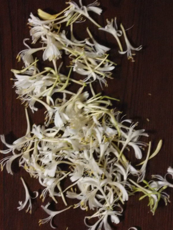 虽然离开村里很多年了,依然对童年的金银花记忆尤新,去年回老家的时候看到村里的药材队早没有了,山上的金银花也基本上没有了,很是可惜,于是和老爸爸一起去挖了两棵。