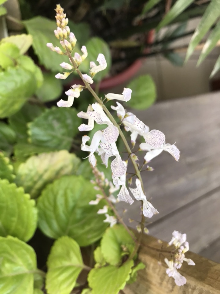第一次见如意蔓开花,花钟形,瓣2裂,唇形,上瓣稍小,中间浅裂,下瓣长且大,白色,密布红紫色斑点,它的花倒是别致可爱的很,凑近闻了闻,并没有什么味道!